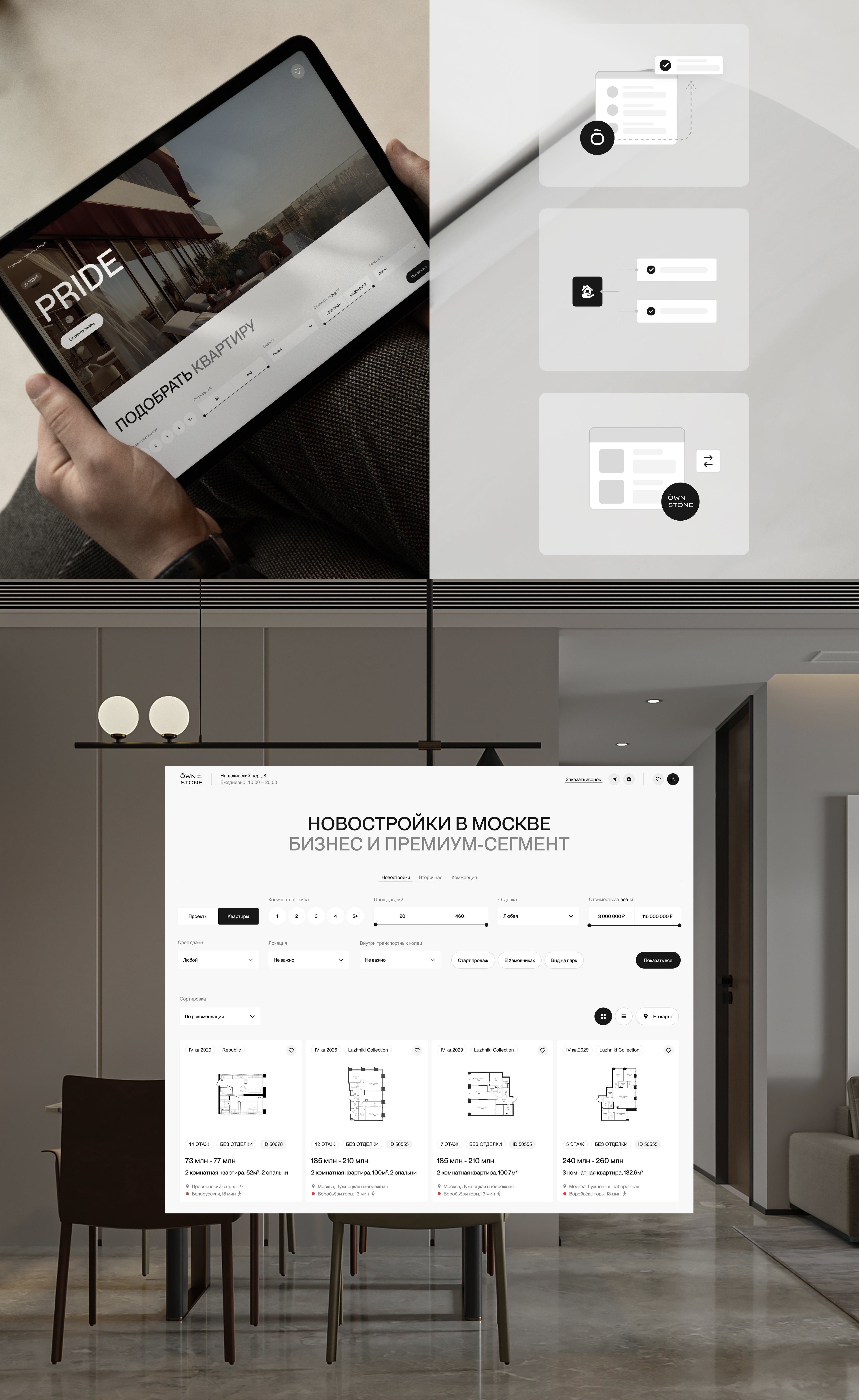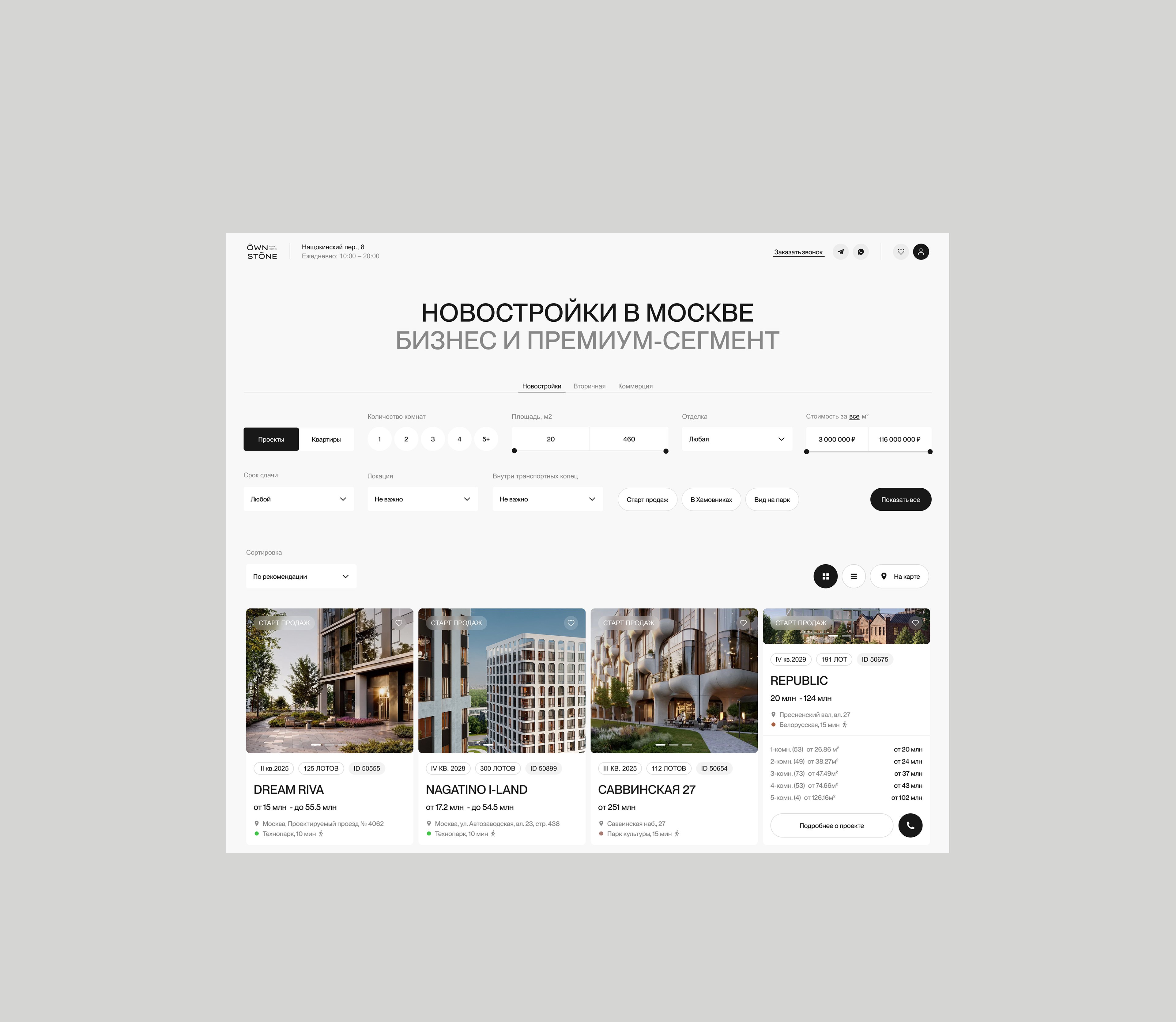 Мы усилили digital-присутствие агентства недвижимости OWNSTONE, разработав полноценный сайт с акцентом на удобство и функциональность. Ключевым элементом стал каталог с гибкой системой фильтрации, позволяющей пользователям быстро находить подходящие объекты. Для партнёров реализован личный кабинет с возможностью управления заявками и объектами.