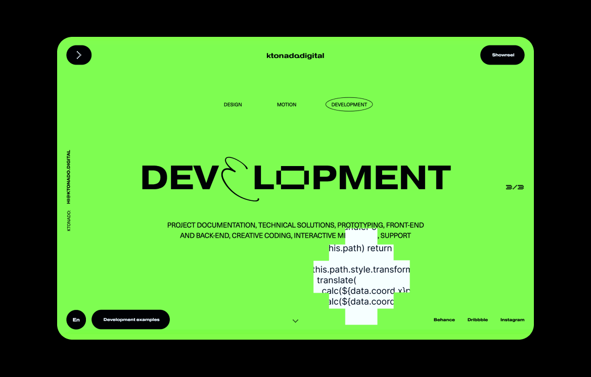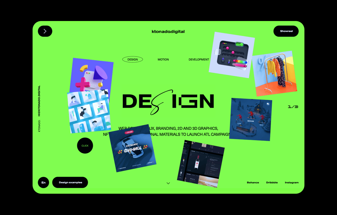 Привет! Мы ktonado — независимое диджитал-агентство. Мы специализируемся на дизайне, моушене и разработке, а также любим проекты с интерактивом. Наш сайт наглядно показывает то, в чем наша команда действительно хороша, а еще учитывает последние диджитал-тренды.