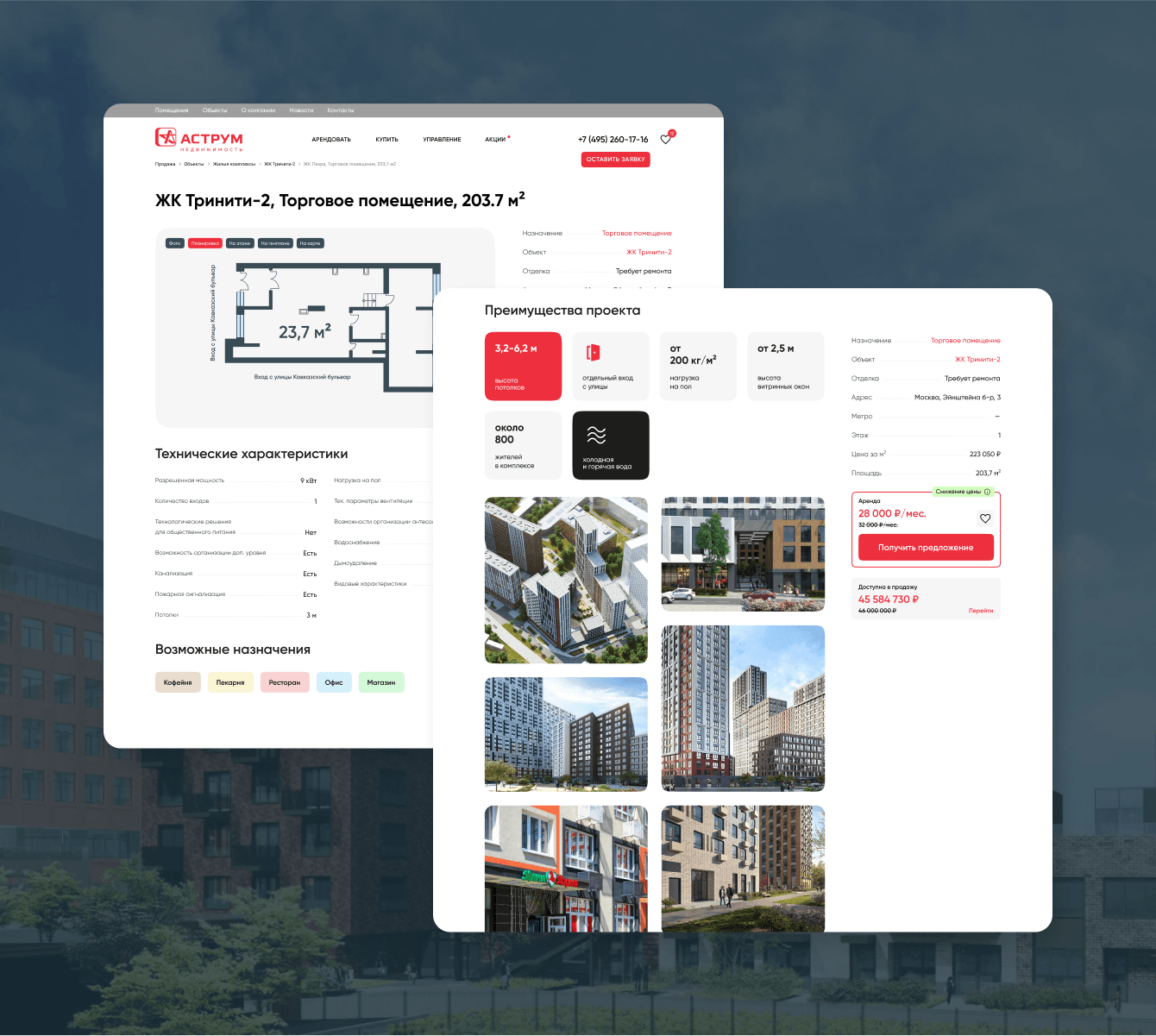 Аструм по максимуму упростил выбор недвижимости для клиентов. Мы оцифровали все этапы сделки – от первой консультации до подачи заявки на бронь. Удобный и информативный пользовательский интерфейс обеспечивает комфортную работу с платформой, а каталог недвижимости в формате визуальной витрины с гибкой системой фильтров позволяет быстро подобрать лот для самого требовательного клиента.