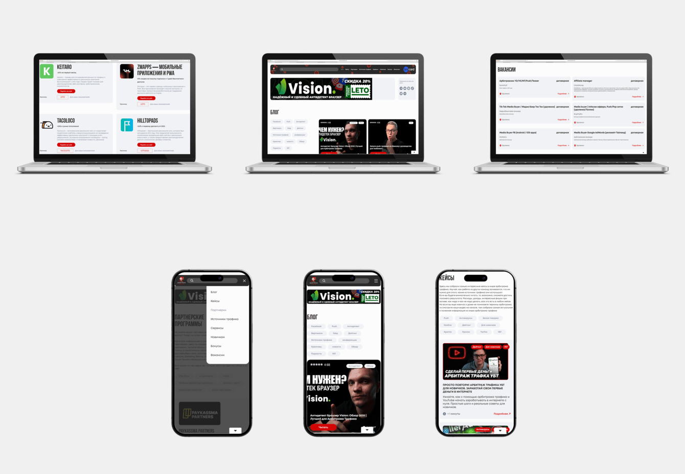 Мы создали удобную систему администрирования, которая позволяет оперативно обновлять материалы, публиковать новые кейсы, статьи и видеоуроки. Особое внимание уделили адаптивности и пользовательскому опыту — сайт одинаково комфортен как на десктопе, так и на мобильных устройствах, что важно для молодой и активной аудитории.