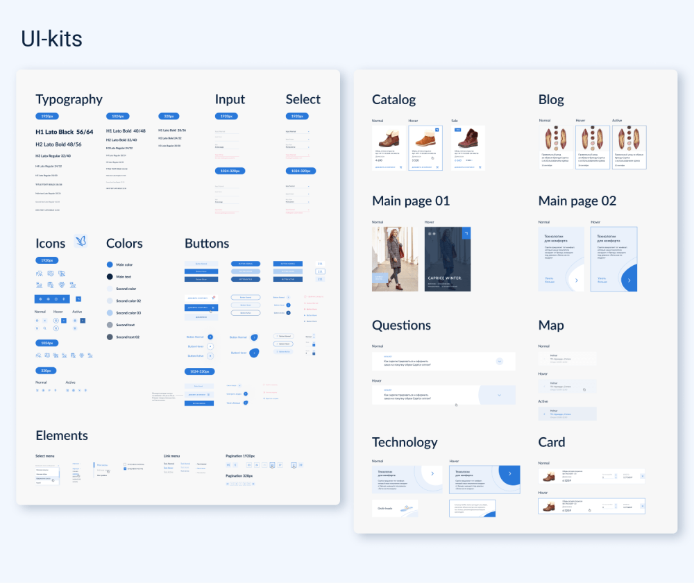При создании корпоративного интернет-сайта предусмотрели раздел с адресами магазинов в каждом городе для частных клиентов, информация о технологиях, знакомство с последней коллекцией и блог со статьями о выборе обуви.