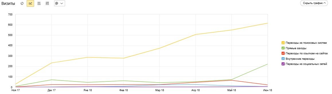 Также, с помощью SEO-оптимизации, выросла посещаемость сайта, что говорит о заинтересованности посетителей: