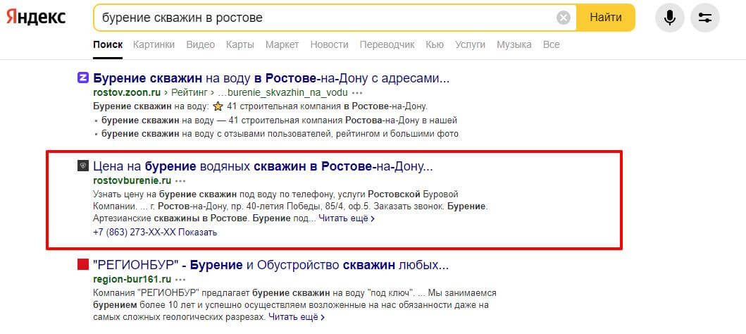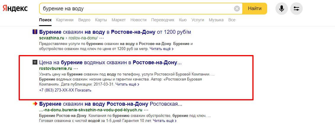 Сайт вышел в ТОП-5 по интересующим Заказчика фразам: