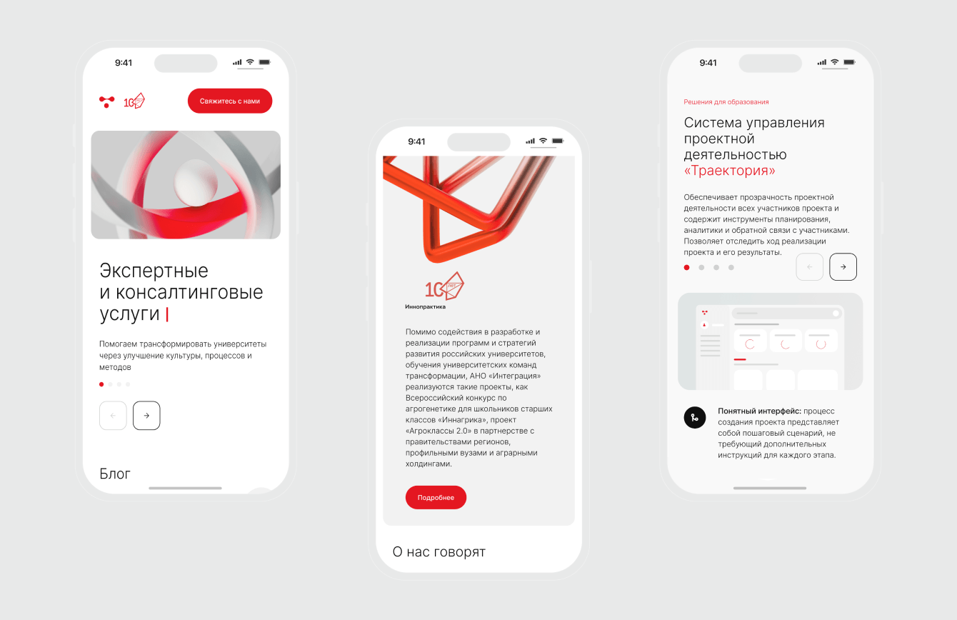 Мы создали современное и престижное визуальное впечатление новой организации, которая занимается поддержкой высшего образования в России. С помощью стильного дизайна и понятных текстовых блоков мы проиллюстрировали деятельность Центра, который обеспечивает переход российских университетов к модели 3.0: