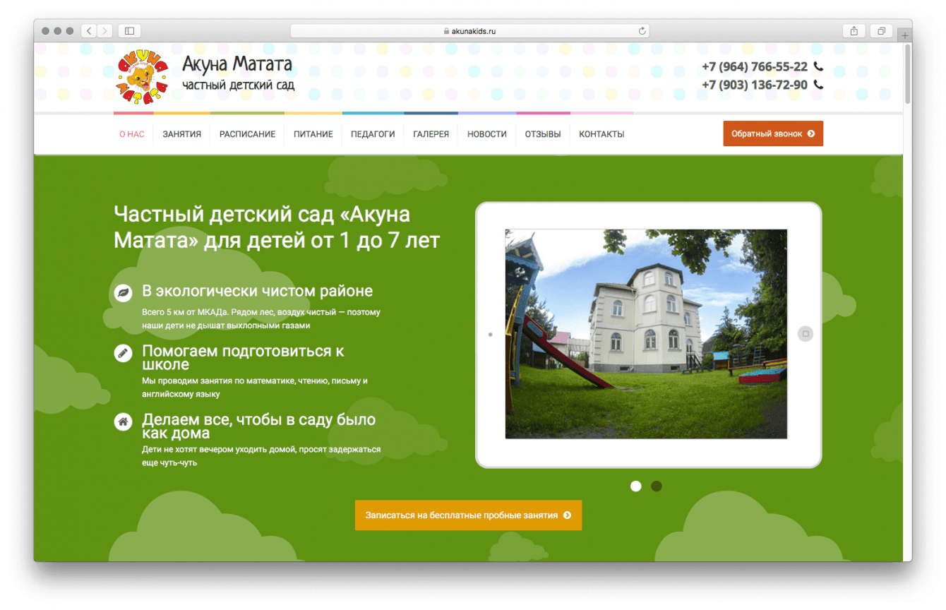 Сделать сайт, который расскажет родителям о преимуществах садика и сконвертирует платный трафик в звонки.