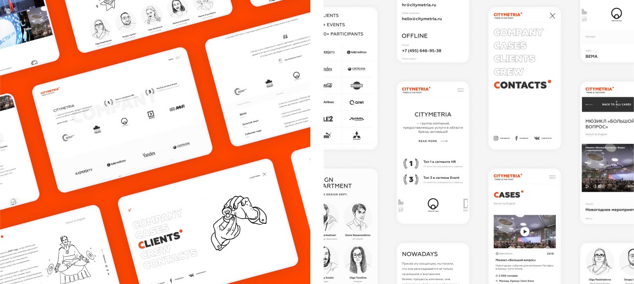 Компетенции агентства Citymetria мы показали через шоурил на главной странице, а также через блок с достижениями и наградами компании.