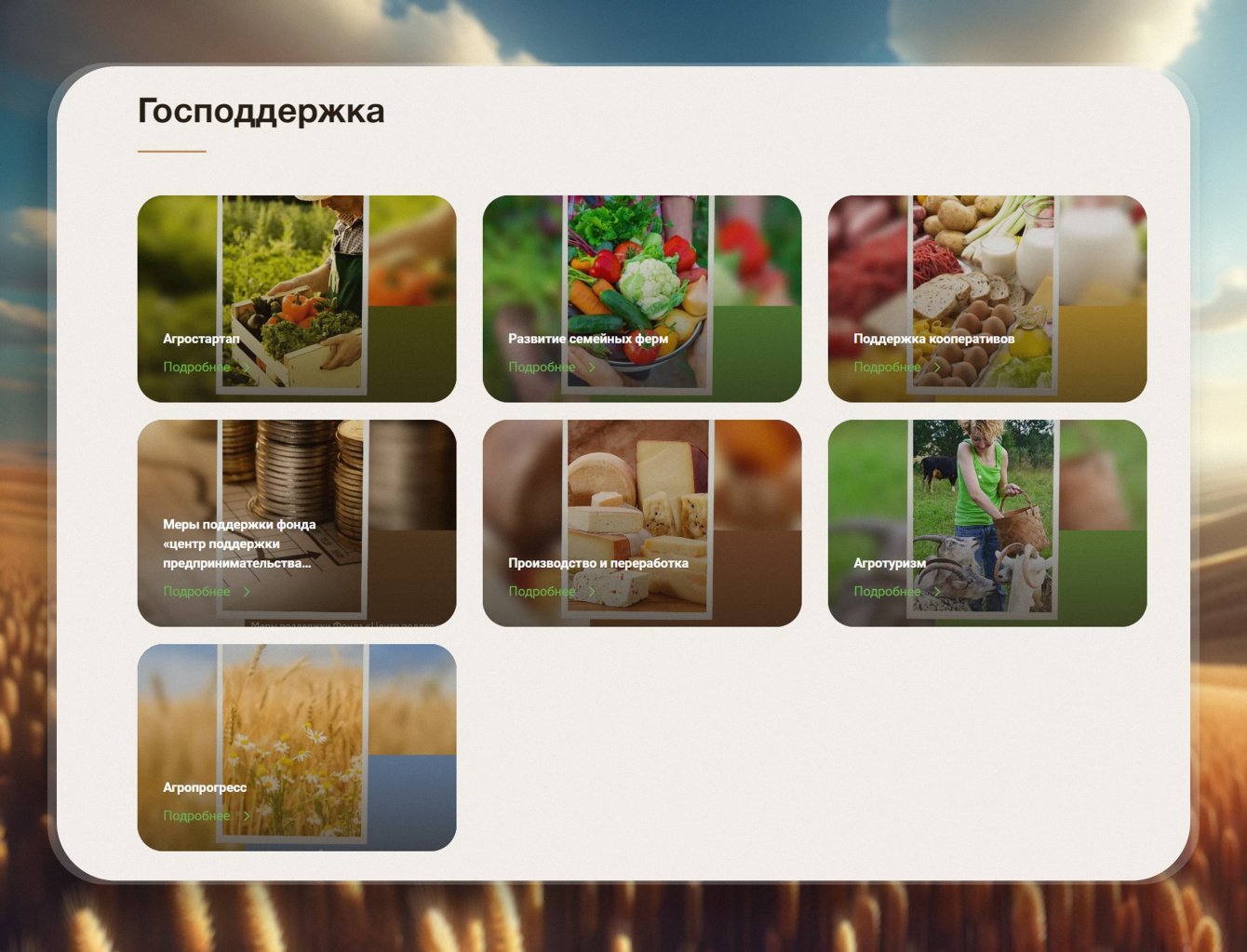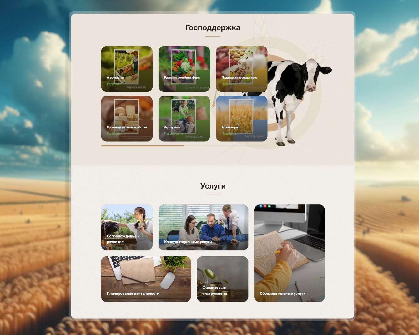 Целью проекта стала разработка сайта, который служил бы в качестве центральной платформы для обмена знаниями, ресурсами и инициативами среди фермеров Калининградской области. Важно было обеспечить легкий доступ к актуальной информации, обучающим материалам и рекомендациям по эффективному ведению сельскохозяйственной деятельности.