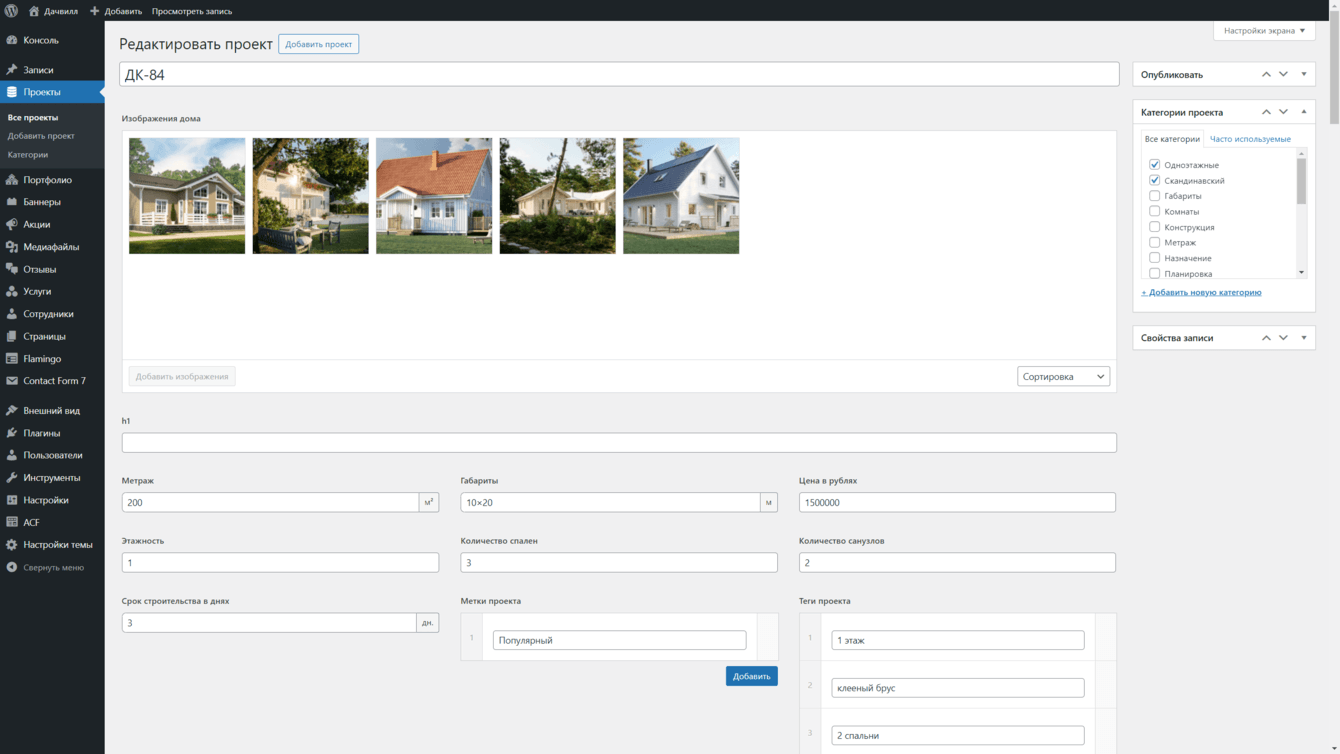 На сайте клиента есть много карточек с домами и банями, которым мы уделили особое внимание.