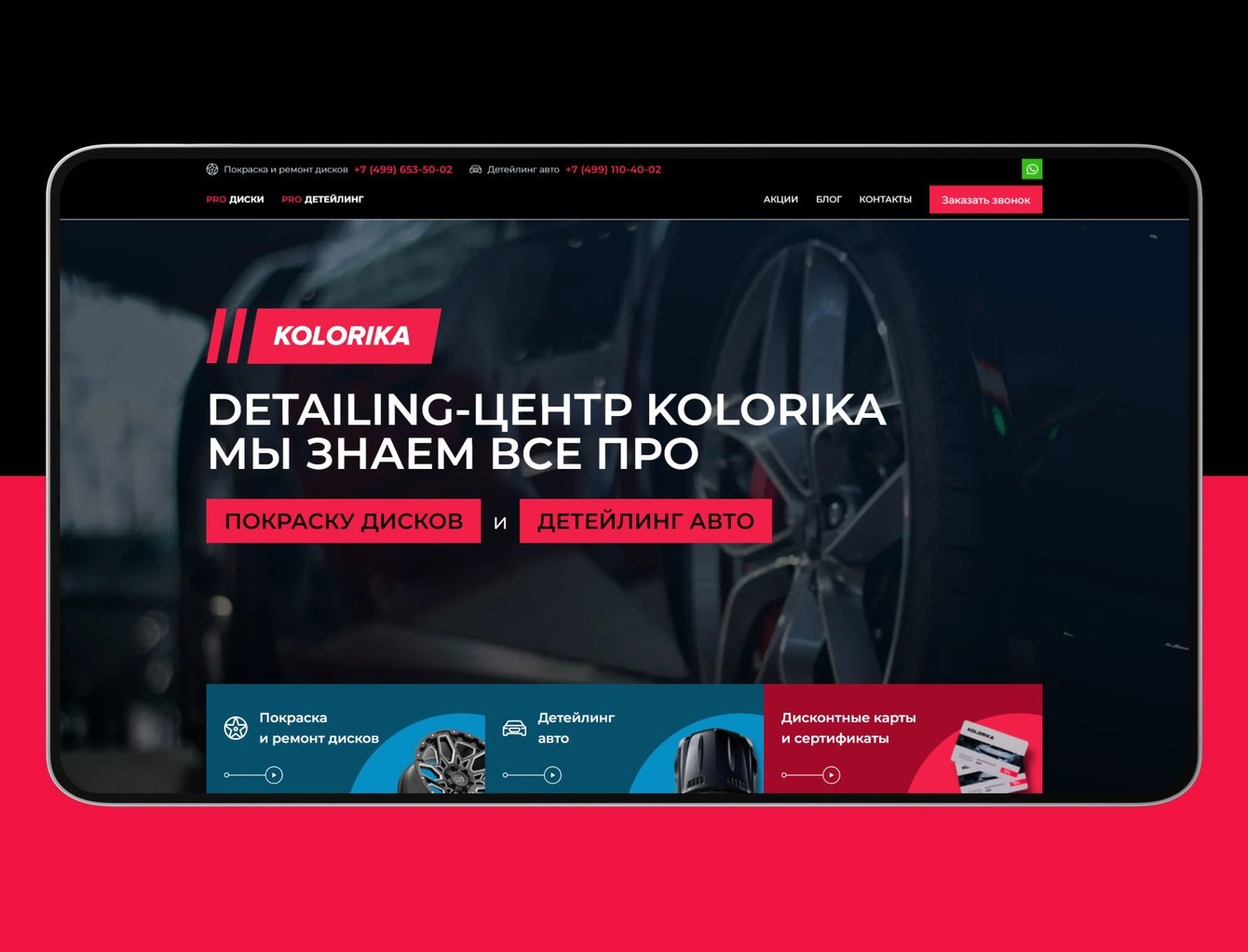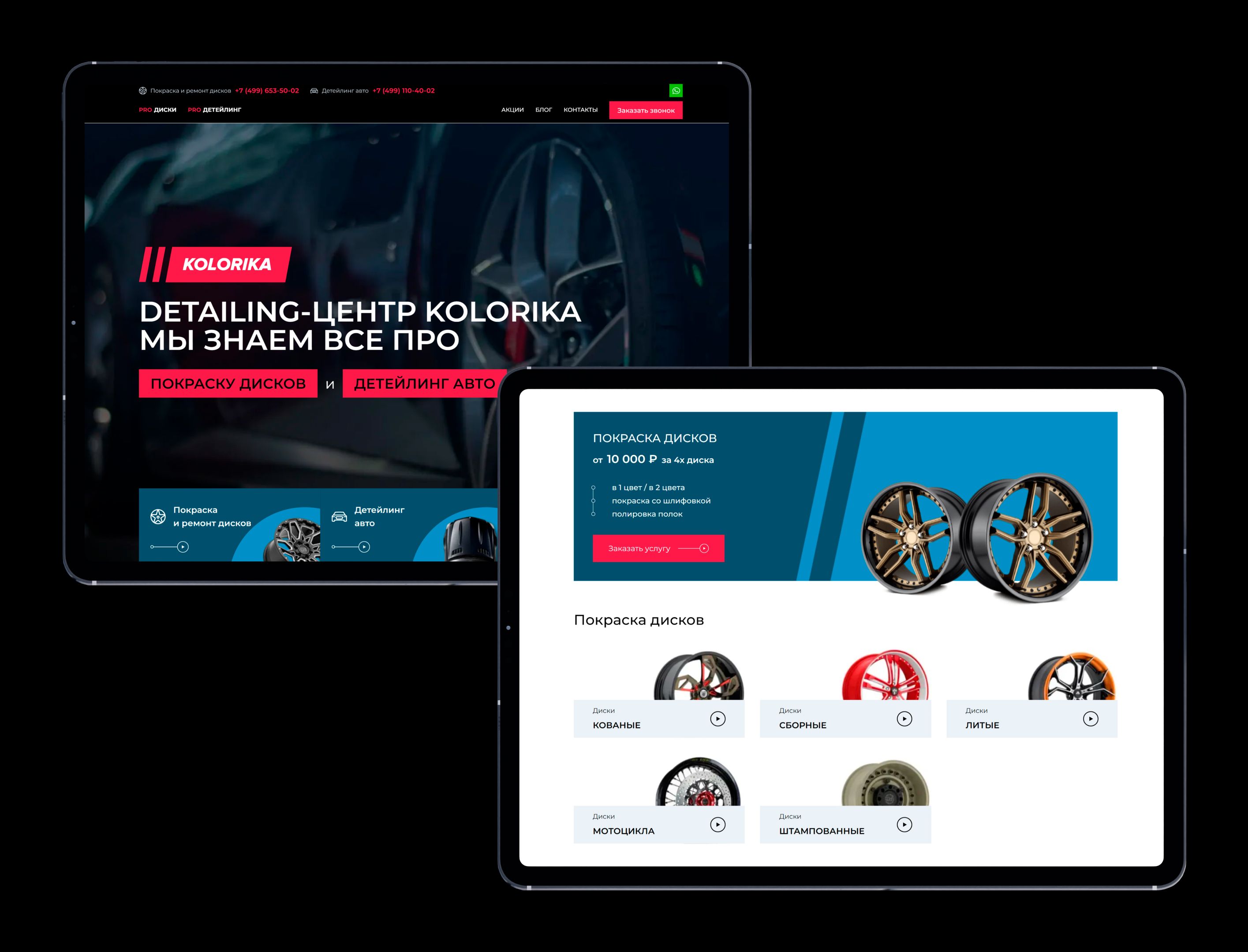 Обновление сайта для автостудии премиум-класса «Kolorika», специализирующейся на покраске, ремонте и детейлинге автомобилей. Необходимо было провести редизайн устаревшего ресурса, устранить запутанную структуру и представить спектр услуг в современном и ярком стиле.