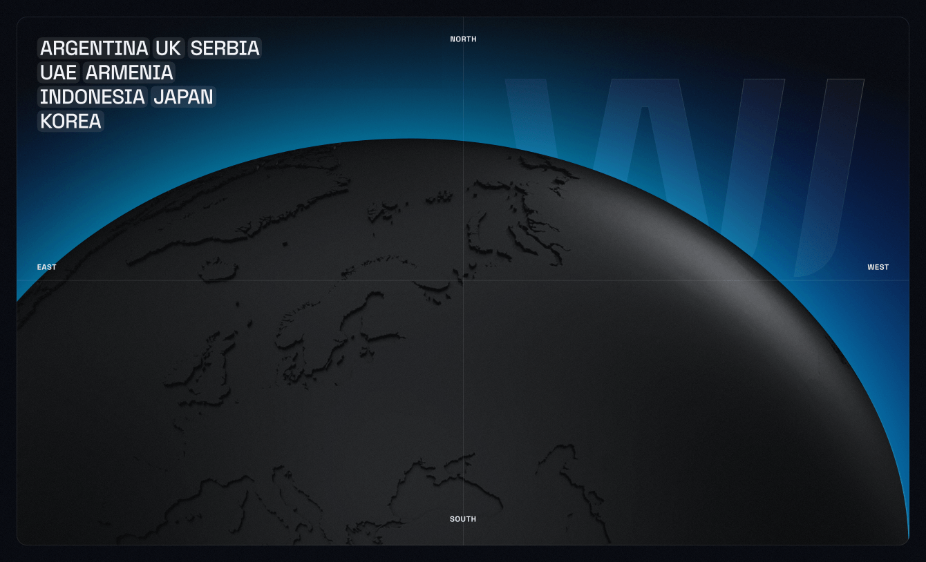 В дизайне ориентировались на разработанную айдентику. Для главного экрана взяли идею с многогранником — сделали для него материал стекла и создали анимированную 3D-модель. А для блока о работе по всему миру — придумали объёмный земной шар.