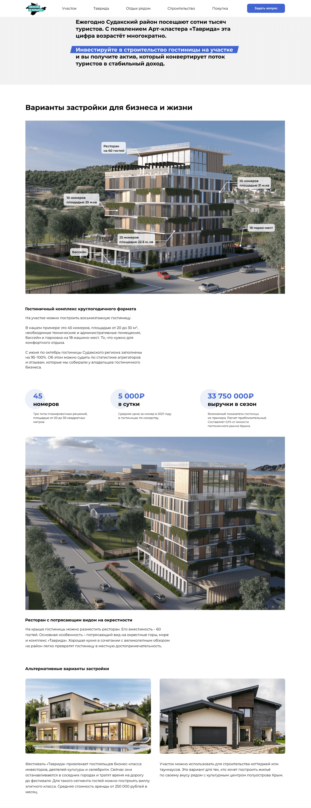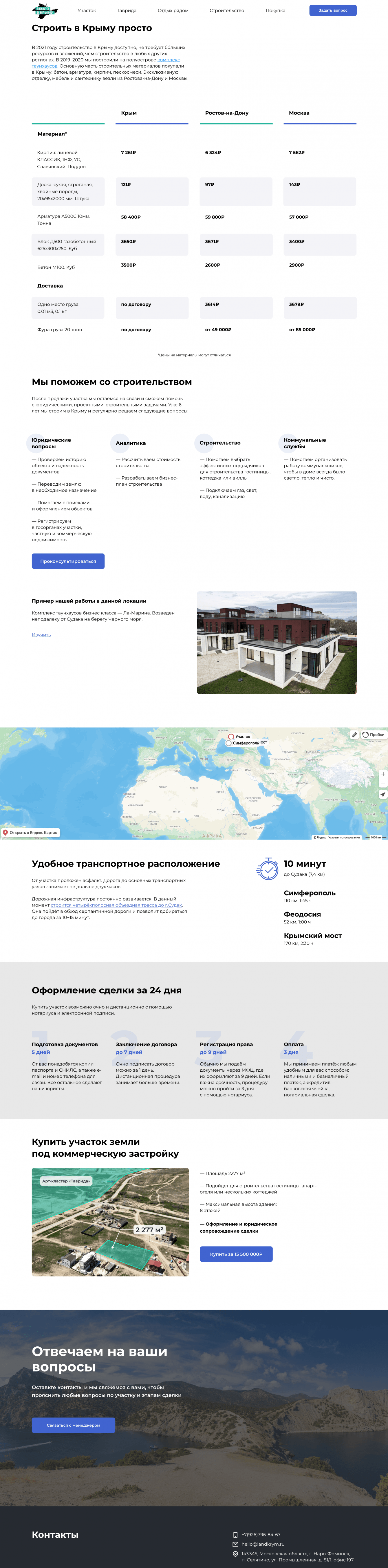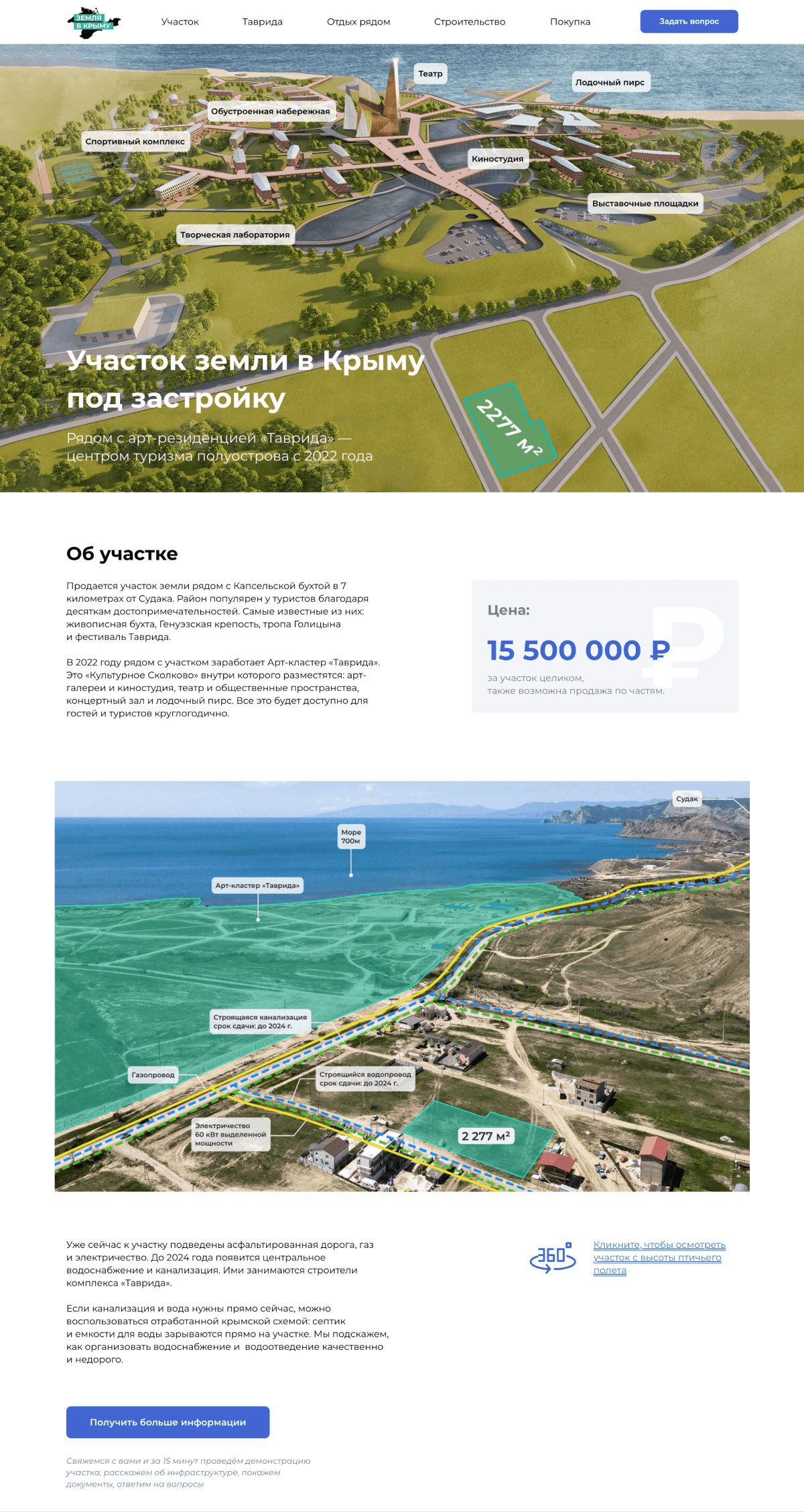 Нам была поставлена задача создать сайт для продажи участков.