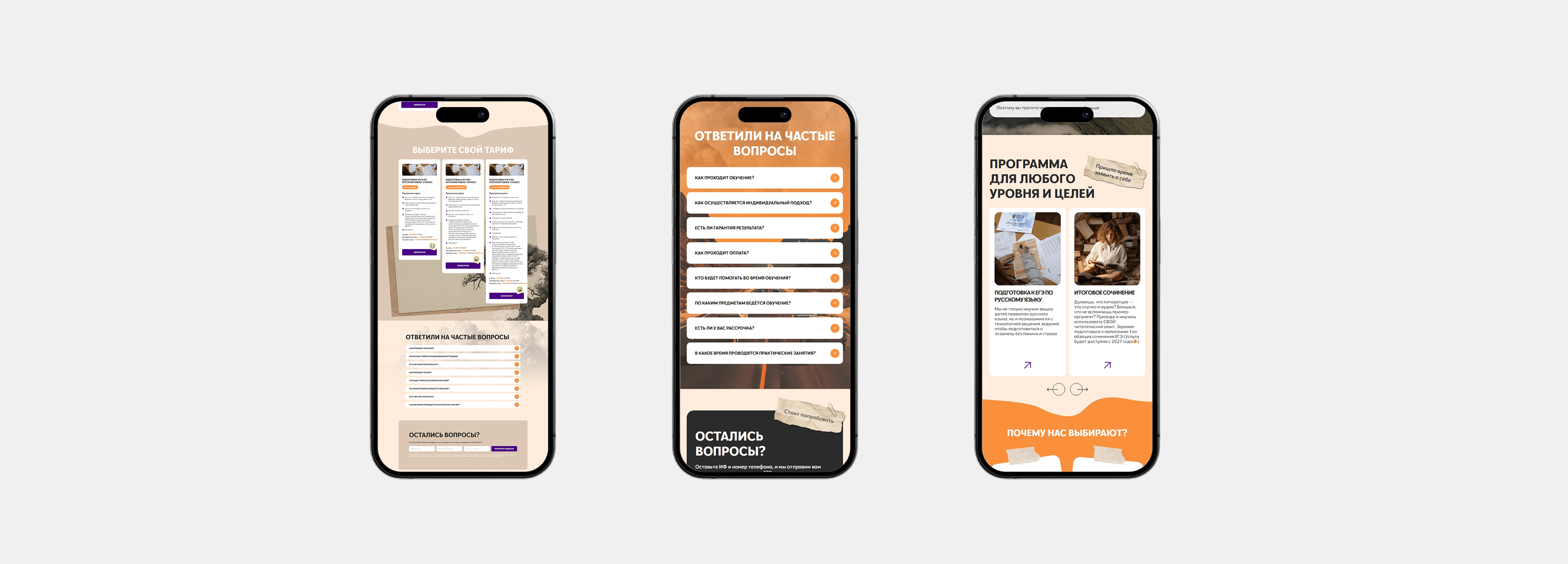 Мы тщательно продумали визуальную иерархию: блоки легко считываются, текст удобен для восприятия, а цвета создают гармонию и эмоциональный фон, соответствующий философии обучения.