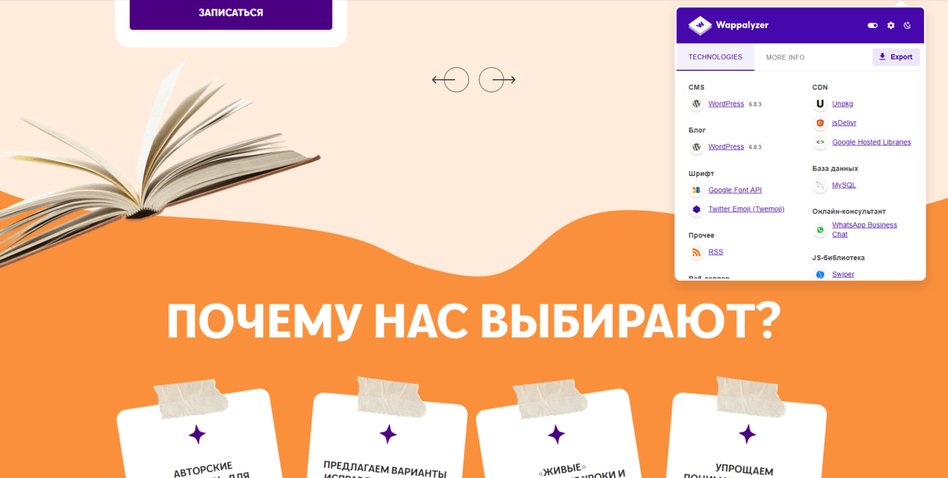 Технически сайт создан на PHP с интеграцией на CMS WordPress, что обеспечило стабильную работу и лёгкое управление контентом.