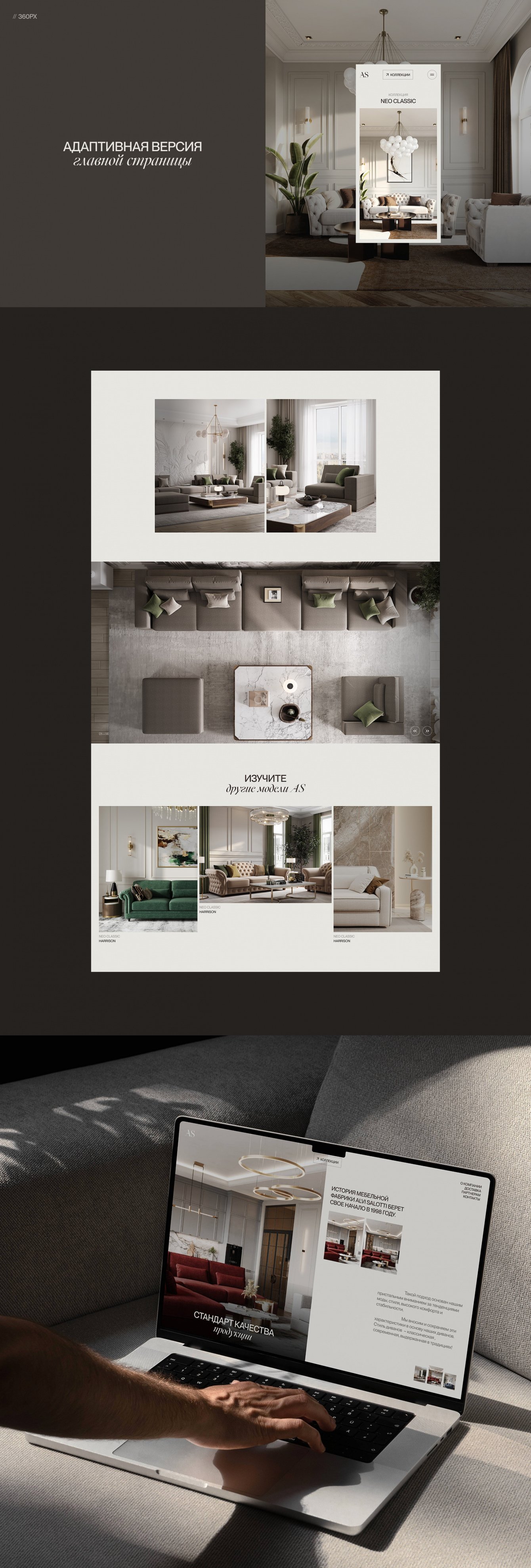 2. На основе полученной информации собрали структуру и дизайн сайта. В нем классно объединили два стиля мебели — классику и инновации.