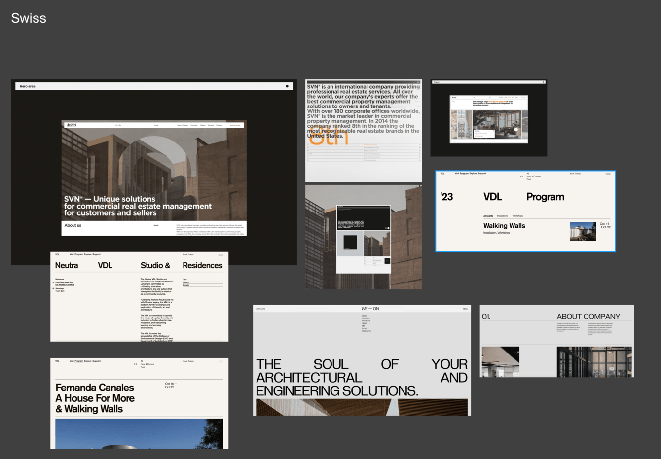 Мы сделали 4 подборки: минимализм, минимализм+, швейцарский стиль, и сгенерированная midjourney