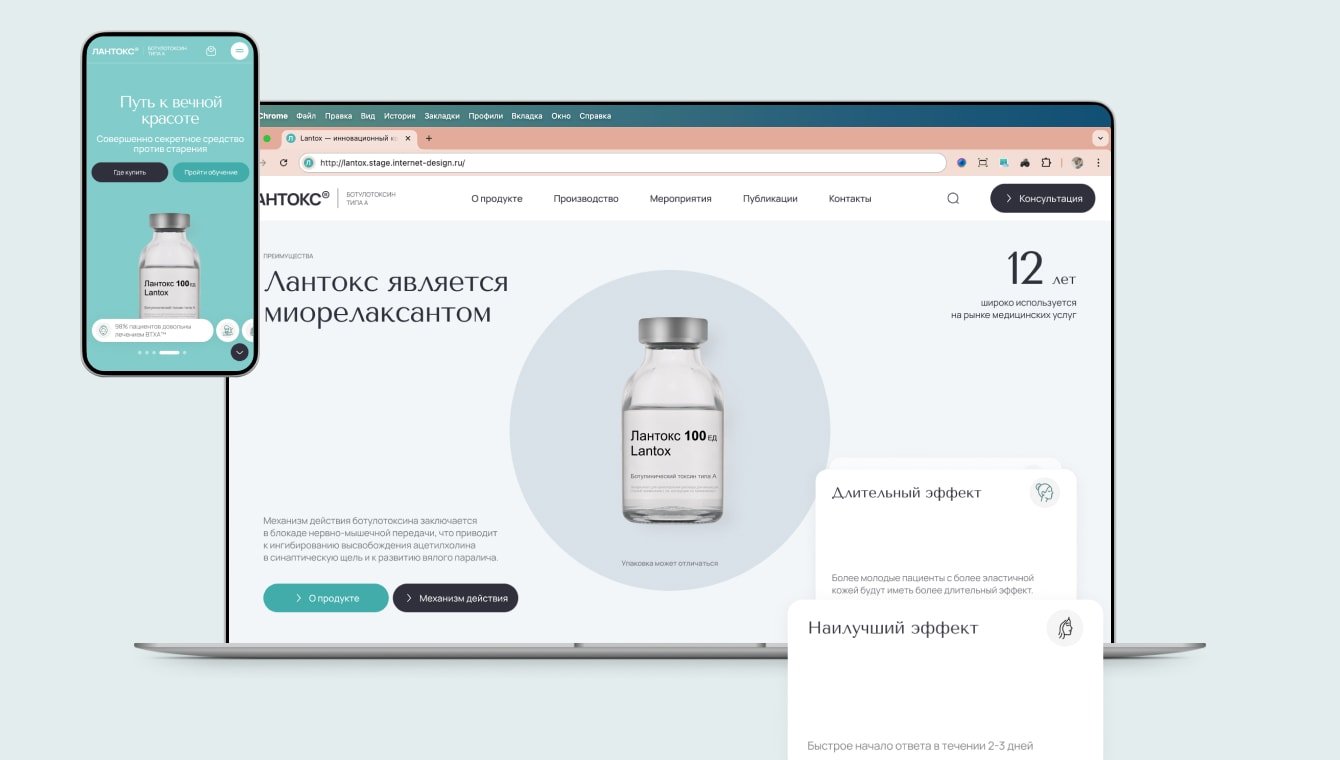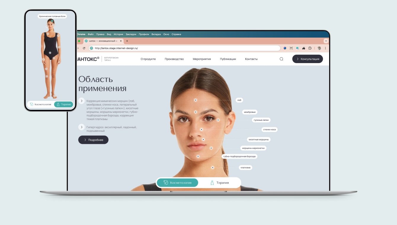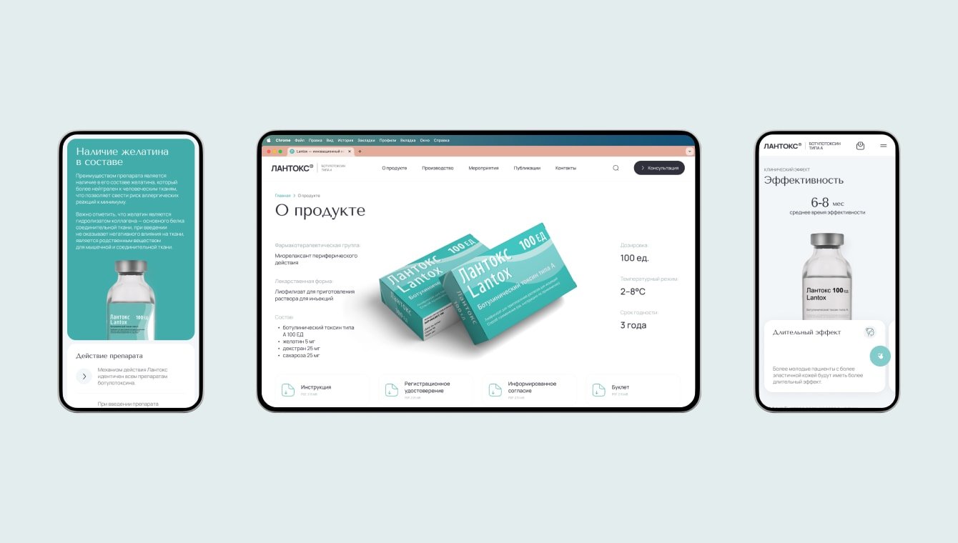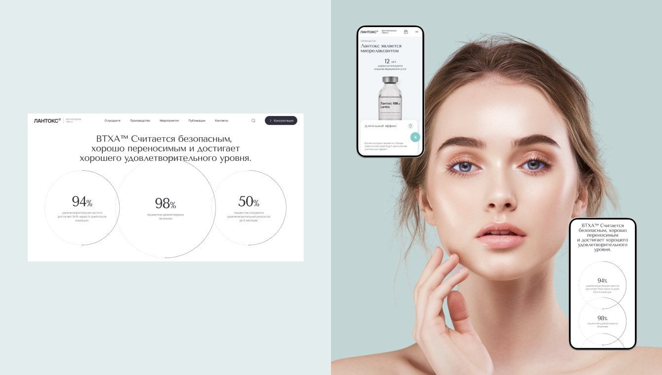 Создание информационного сайта позволило эффективно донести до врачей-косметологов и потребителей все преимущества нового препарата. На сайте представлена исчерпывающая информация о механизме действия, клиническом эффекте и безопасности препарата.