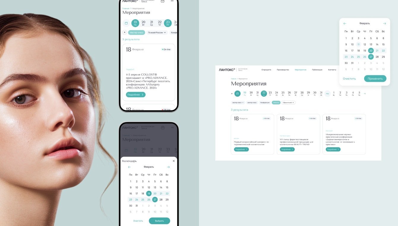 Обучающие семинары — это стандарт и необходимая практика для косметологии. Поэтому на сайт мы добавили календарь мероприятий с удобными фильтрами: вебинары, конференции, мастер-классы. Удобный поиск по дате, типу мероприятия и городу позволяет быстро найти интересующее событие.