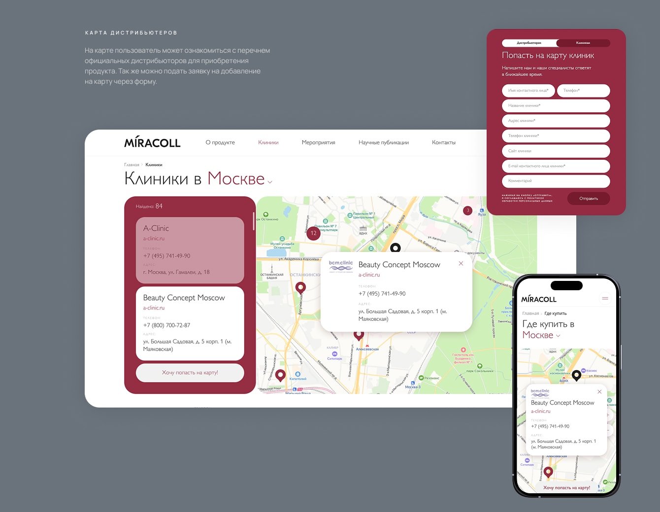 Через сайт нужно донести до врачей-косметологов преимущества MIRACOLL, рассказать: где пройти обучение, где купить препарат и где можно пройти процедуру.