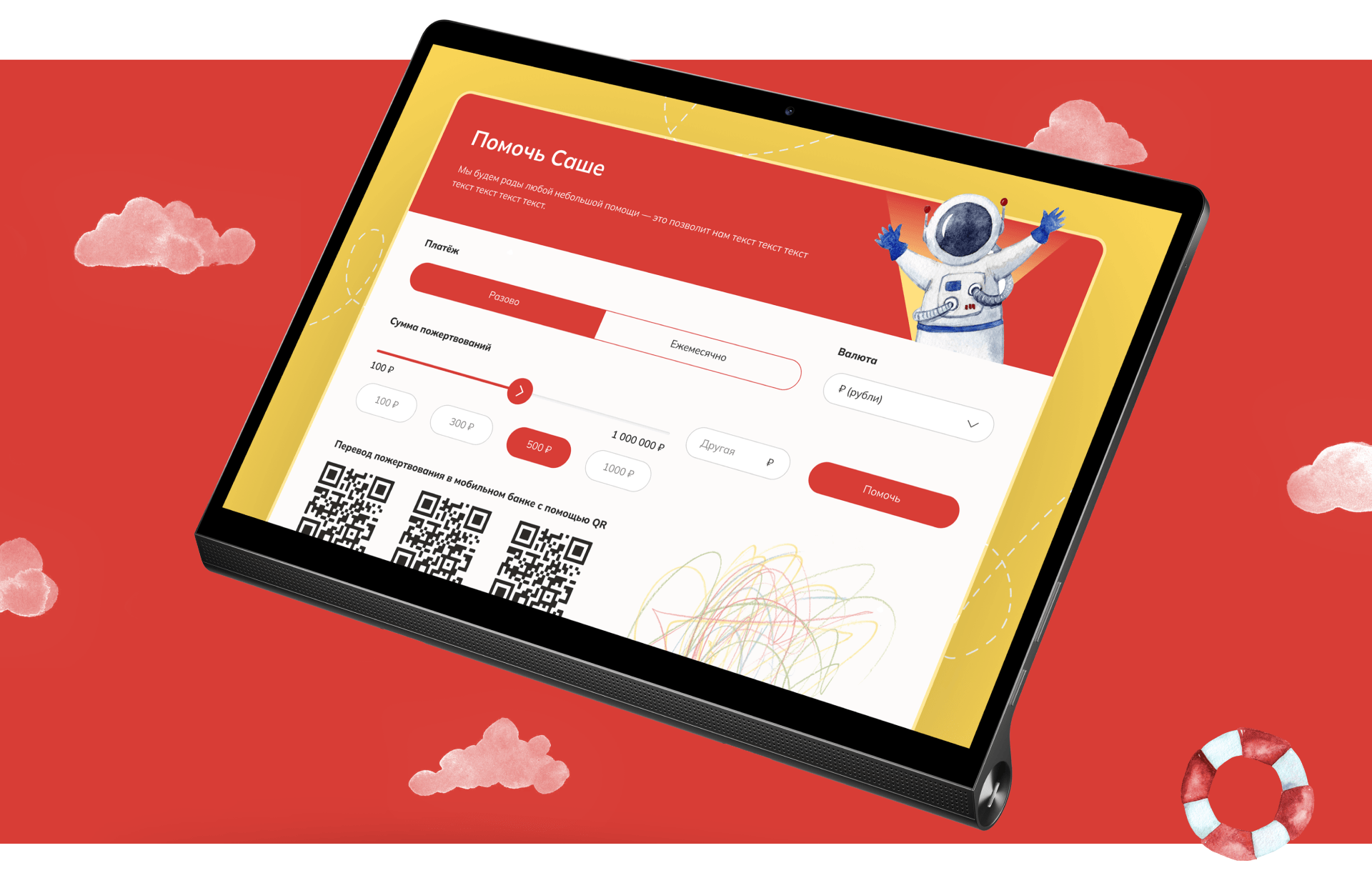 По просьбе заказчика, мы предусмотрели возможность размещать в платежной форме индивидуальные иллюстрации для каждого подопечного из административной панели управления сайтом. Если, к примеру, ребенок мечтает стать космонавтом, то текстовый рассказ на странице с его историей можно разбавить тематическими рисунками. Такое простое решение дополнительно погружает пользователей в историю каждого подопечного.