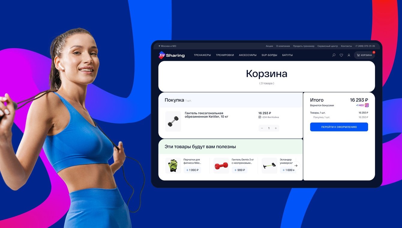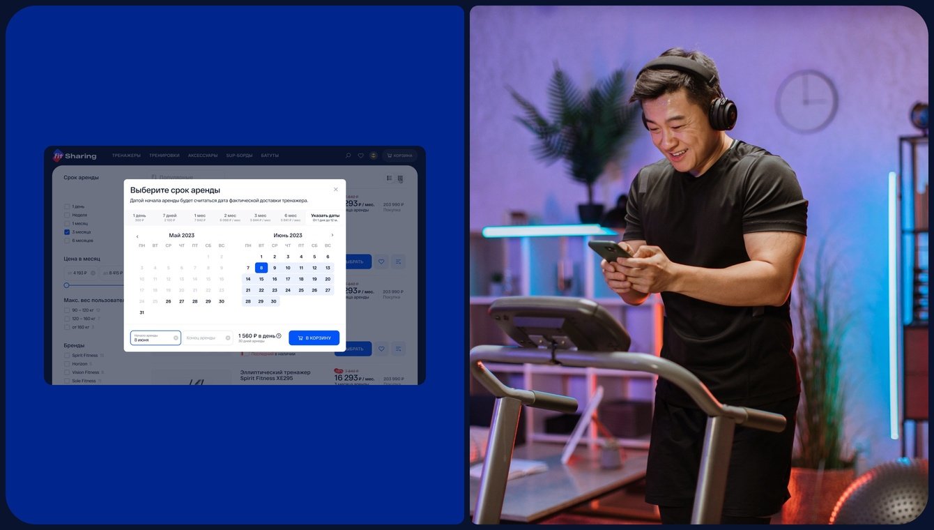 Новый сайт-сервис FitSharing — площадка, где пользователи могут и покупать, и арендовать тренажеры. Причем сделать это можно самостоятельно, без вовлечения менеджера (что помогает расширить аудиторию покупателей).