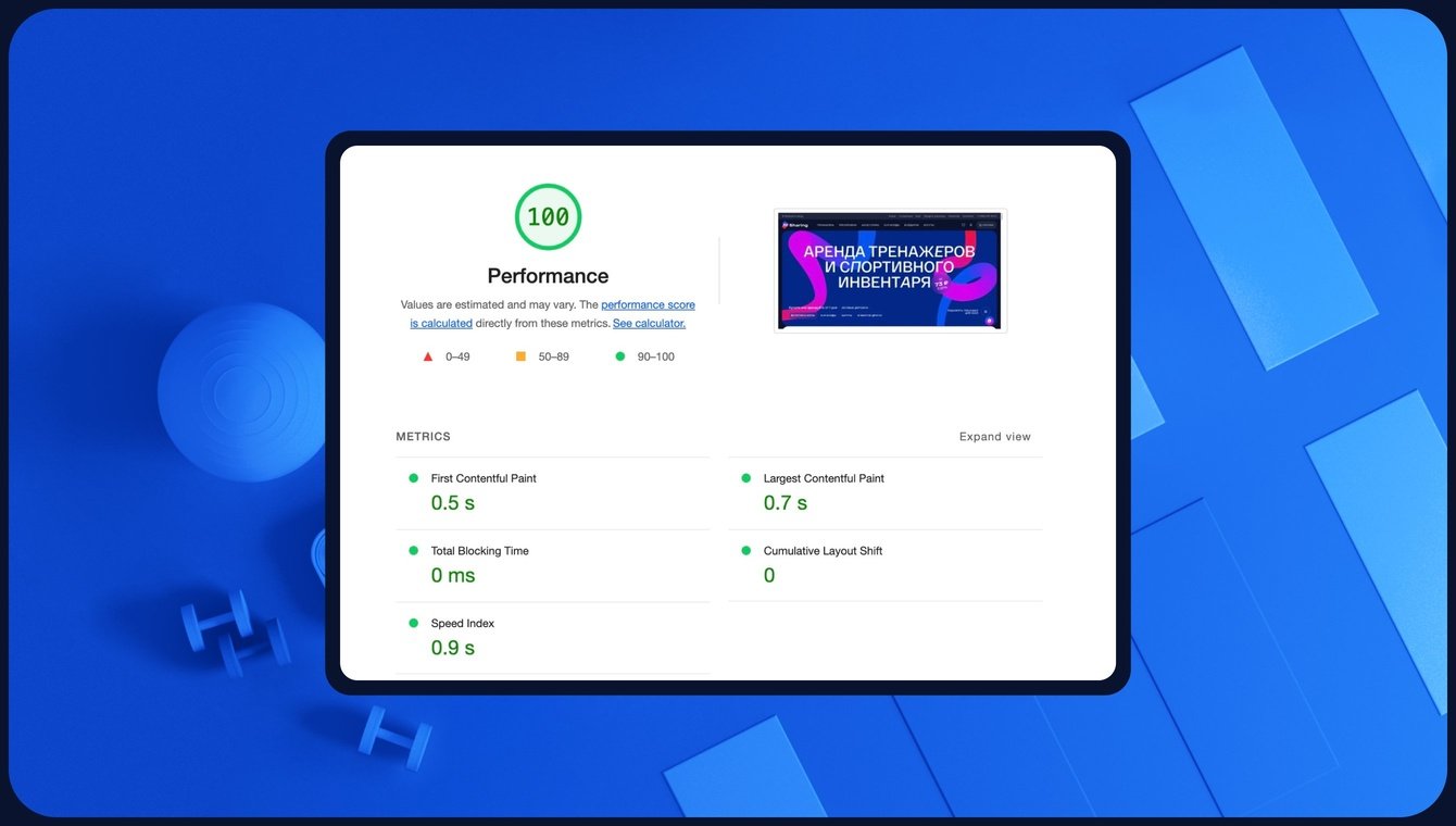 — оптимизировали скорость сайта (добились показателя performance 100 из 100 баллов, по результатам тестирования десктопной версии в Lighthouse);