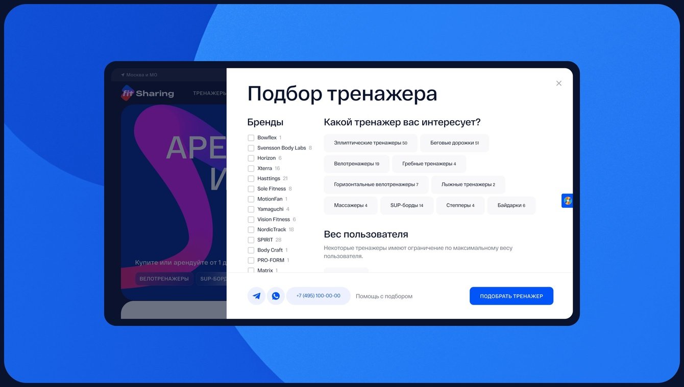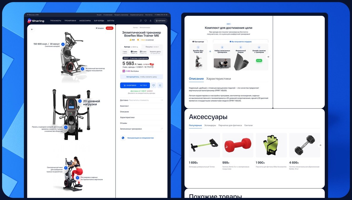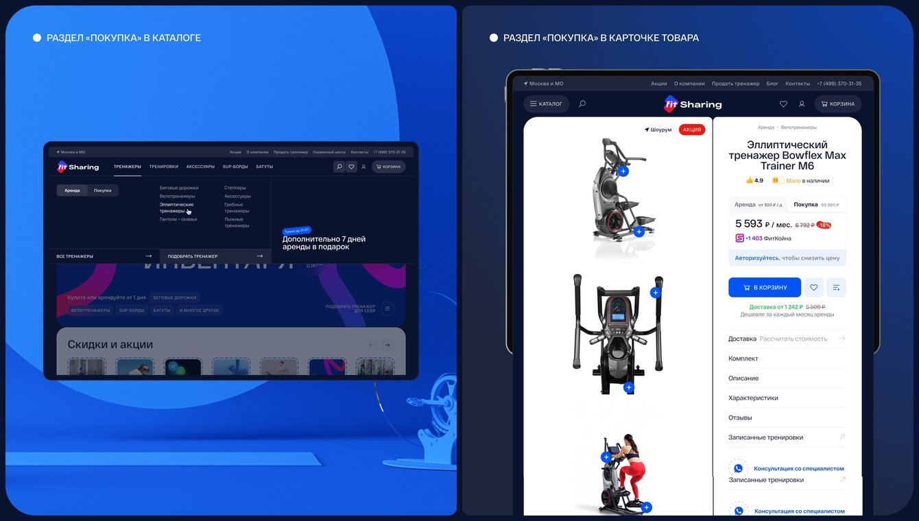 — Сайт FitSharing посвящен только аренде тренажеров: о том, что товары можно купить, пользователь узнает только в карточке товара.