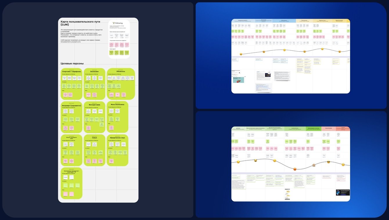 Провели кабинетные исследования с текущими и потенциальными пользователями. На основе интервью составили CJM пользователя. А еще сформулировали идеи по тому, какими блоками можно наполнить сайт, чтобы не только закрыть боли клиентов, но и дать им дополнительную пользу: например, появилась идея добавить на сайт систему мотиваций и статьи про здоровье и спорт.