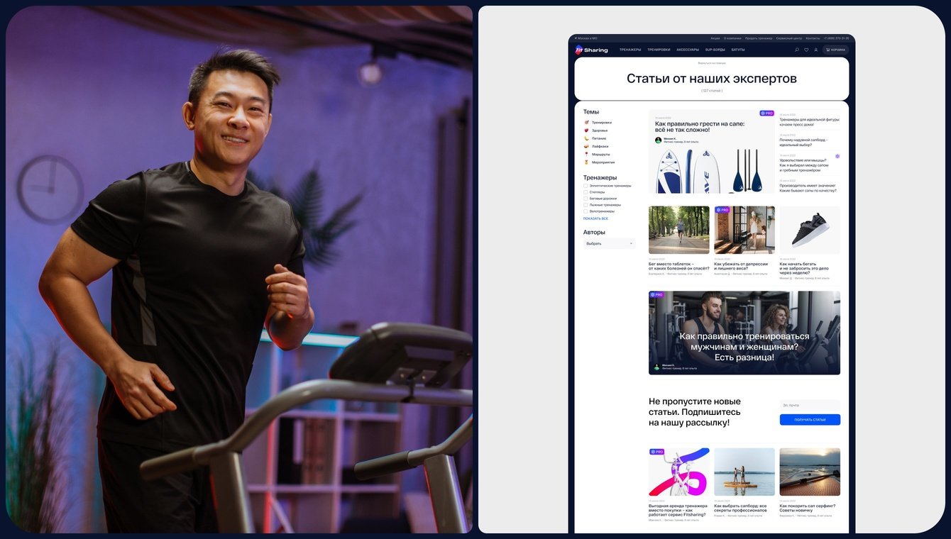 4.2 Разработали блог со статьями от тренеров: о тренировках, питании, здоровье, тренажерах, витаминах и т.д. Идея родилась еще в процессе аналитики — когда мы поняли, что аудитории не хватает полезного контента про здоровье и спорт, а также, что это является мощной точкой роста органического трафика и расширения аудитории за счет информирования об услуге аренды тренажеров тех, кто пока еще не ищет ее напрямую. Также добавили в блог эксклюзивные материалы, которые доступны только клиентам FitSharing.