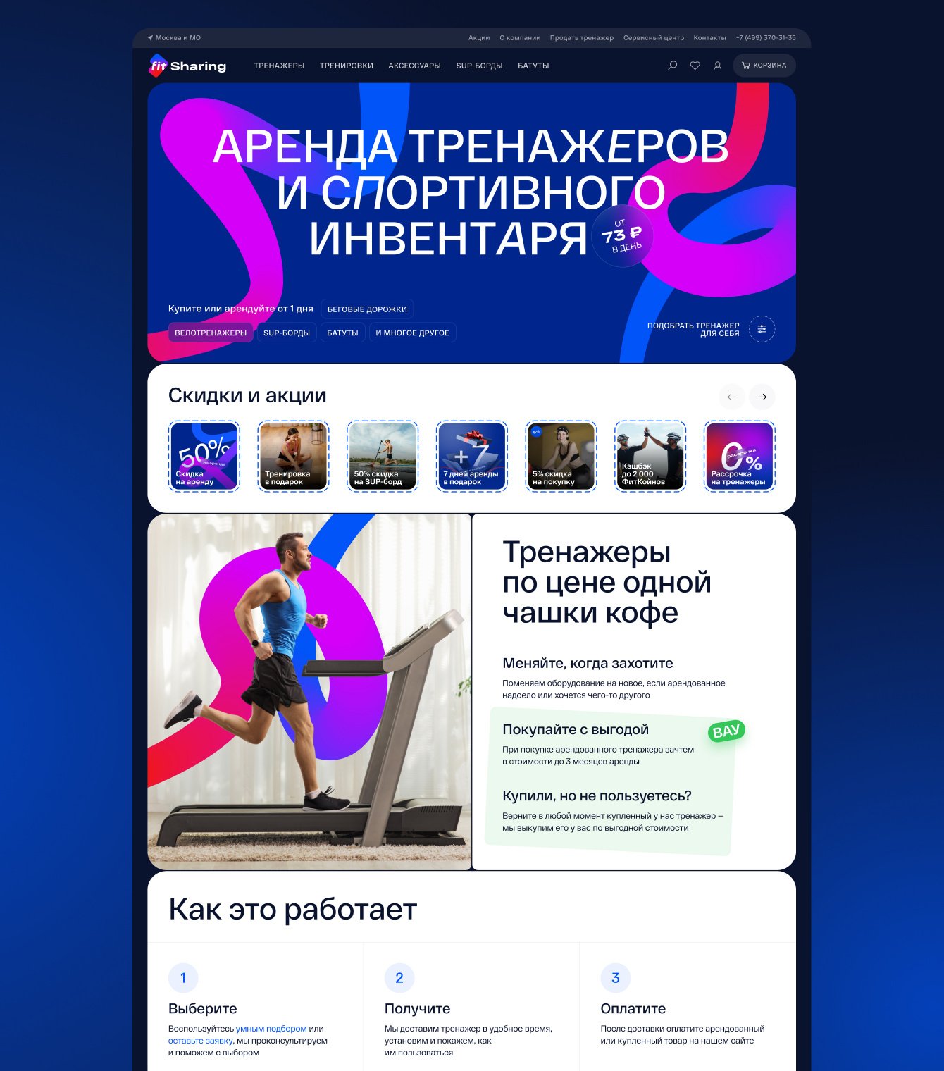 1. Создали сайт, на котором равномерно распределена информация о покупке и аренде тренажеров.
