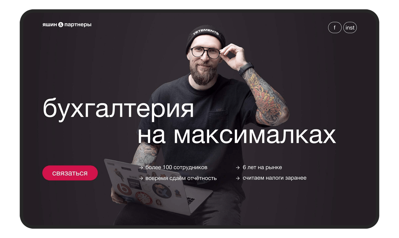 Подход «Яшин и Партнёры» к ведению бухгалтерии явно отличается от подхода других компаний. Нашей задачей было не только отразить преимущества, но и донести через визуальную концепцию сайта вайб и нестандартный подход к работе: креативность, человеческое отношение и искренний сервис. Сайты конкурентов «Яшин и Партнёры» сделаны одинаково и строго, а текст пестрит профессиональными терминами. В работе над лендингом для «Яшин&Партнёры» мы пошли по другому пути.