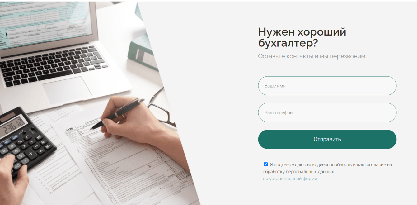 Главная задача сайта, занимающегося бухгалтерскими услугами — это рассказать об оказываемых услугах, сформировать интерес и побудить оставить заявку на сайте. Дополнительные цели – проведение рекламных акций, ссылки на страницу, создание позитивной репутации фирмы. Реализованный дизайн и небольшой функционал отражает всю важную информацию, но не больше – лаконичность выражена даже в выбранном цвете. На сайте реализовано 2 блока рассчитанных на целевое действие (оставить заявку) хорошо оформленные в графическом виде, реализован удобный каталог услуг в виде инфографики.