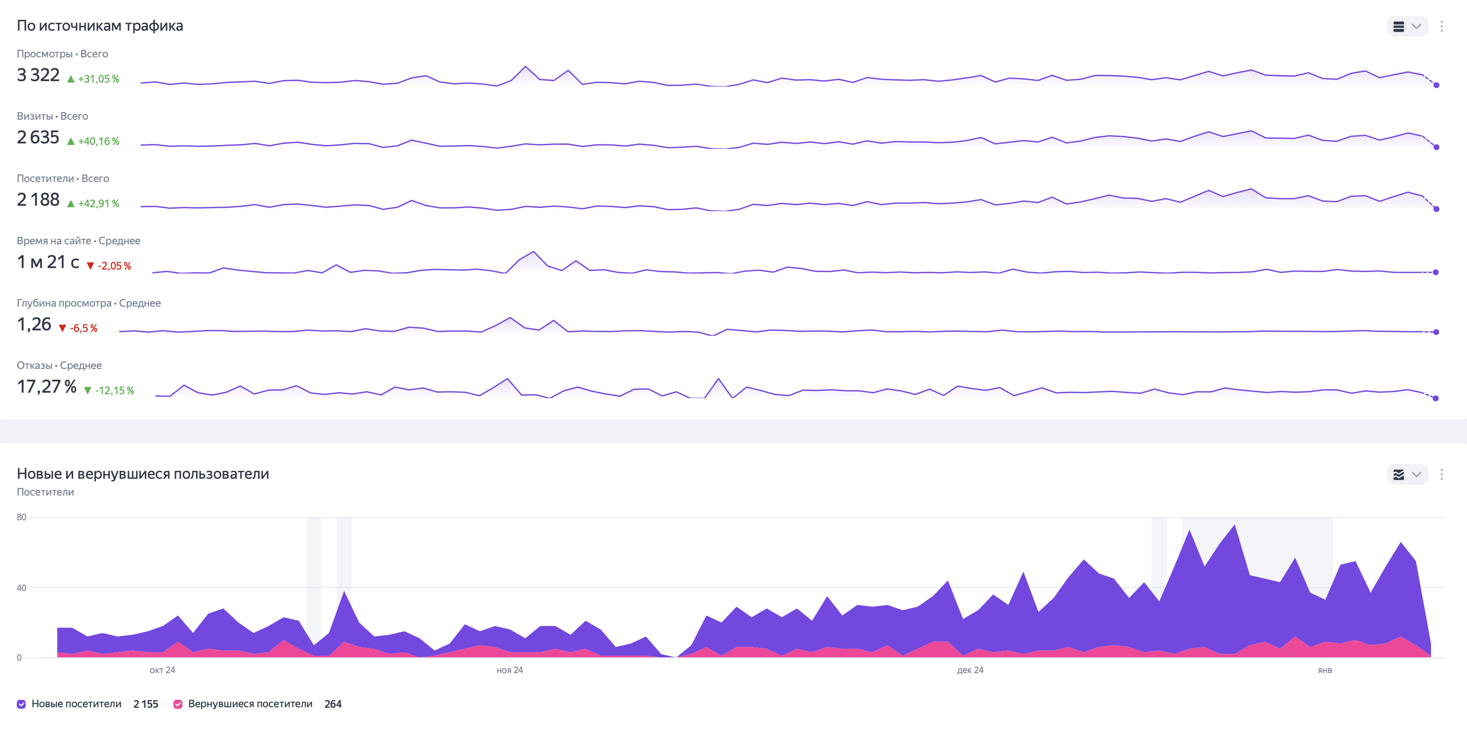 · Средняя глубина просмотра составила 1.27.