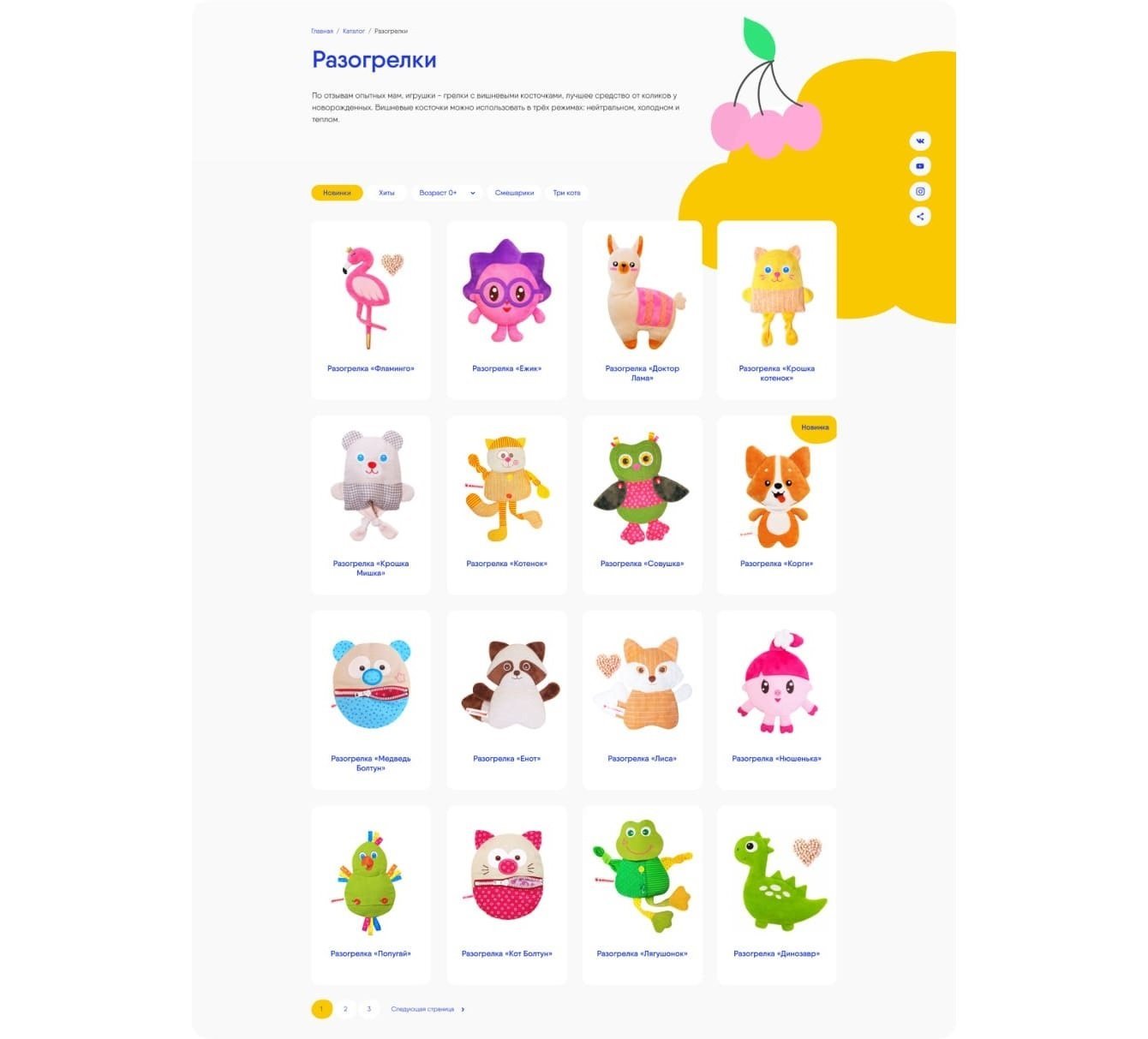 На первый взгляд, задача стандартная — сайт устарел, и его нужно обновить. Но если учесть тематику, то получится по-настоящему интересный проект, ведь он без преувеличения должен быть интересен людям всех возрастов. Это был наш не первый клиент, занимающийся производством детских товаров, и мы уже держали в уме, что игрушки детские, а вот сайт — для взрослых: он должен отвечать всем современным требованиям покупателей и поисковых систем. Важно было поймать баланс между мимимишным дизайном и современным бизнес-инструментом.