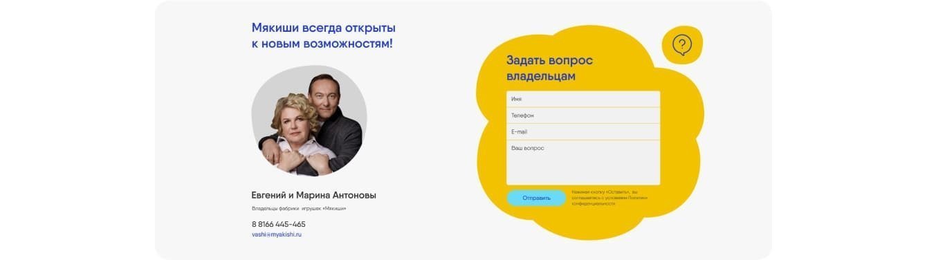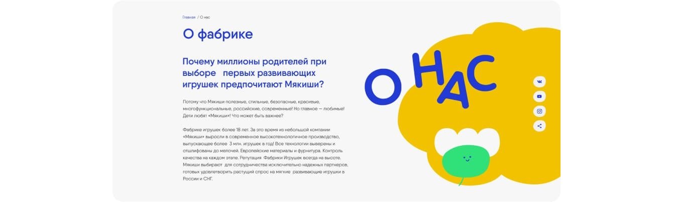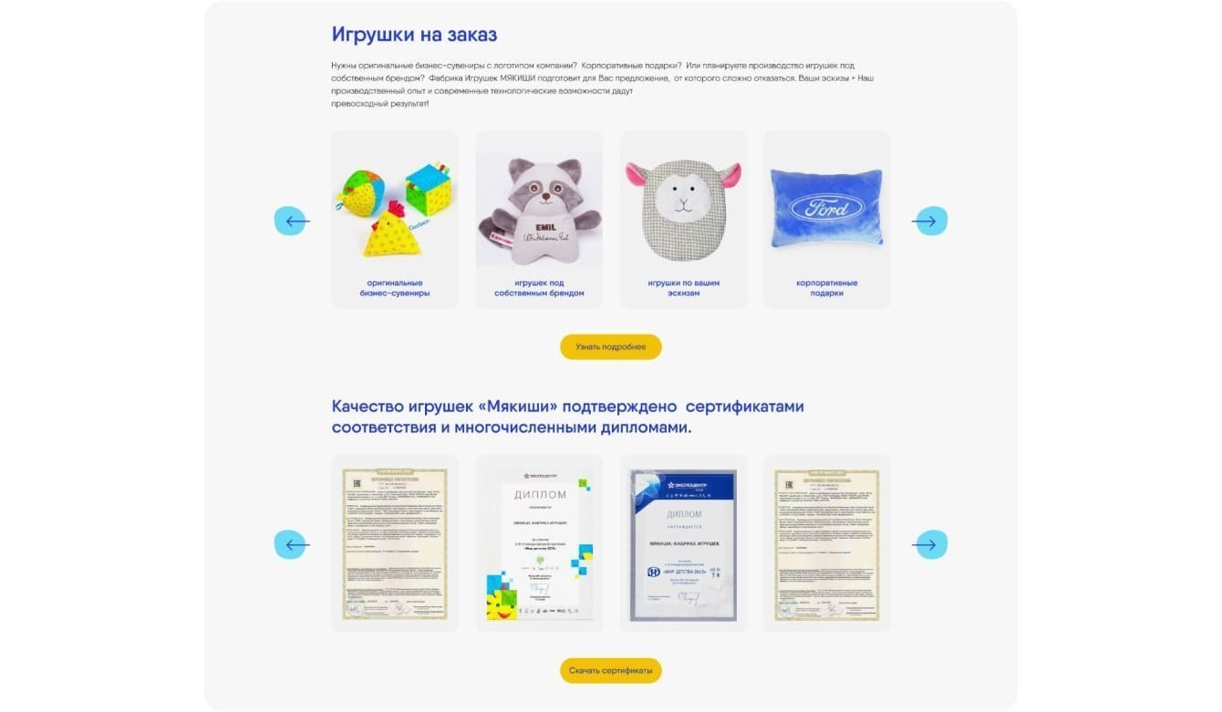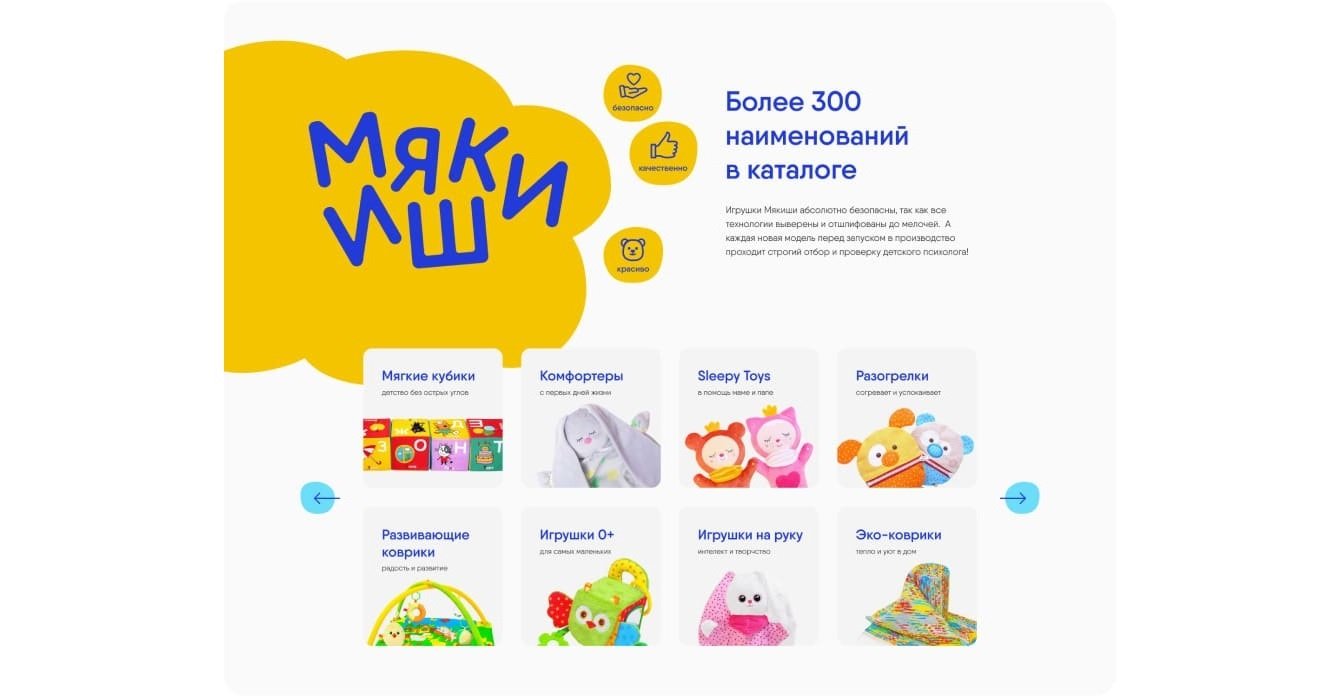 Игрушки фабрики «Мякиши» пользуются большим спросом. Сайт должен показать это, объяснить все выгоды сотрудничества и предоставить возможность быстро получить информацию о том, как оформить заказ оптом.