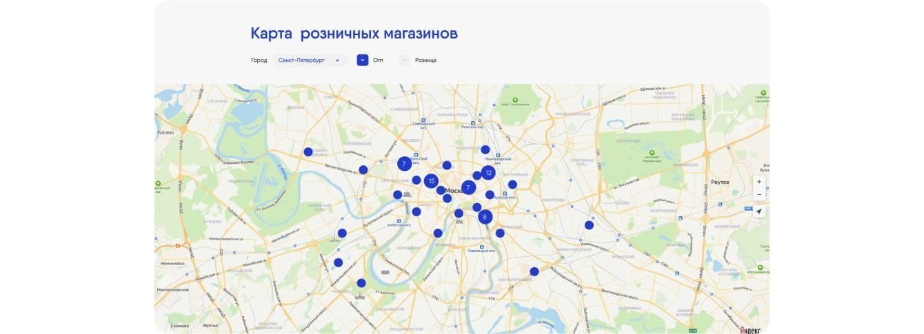 Для тех покупателей, которые хотят узнать, где можно приобрести продукцию фабрики, мы предусмотрели раздел «Где купить». С помощью интерактивной карты посетители сайта могут быстро найти ближайший магазин, в котором представлены игрушки бренда «Мякиши».