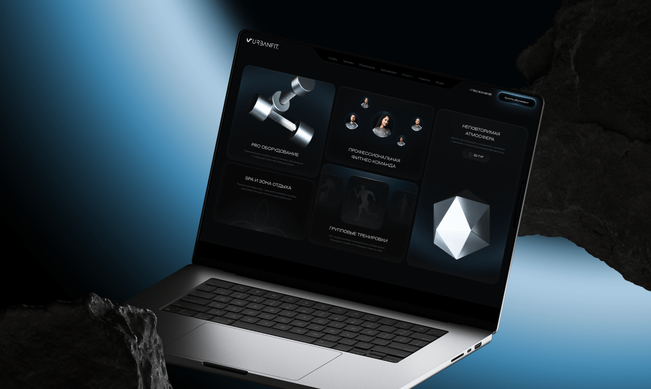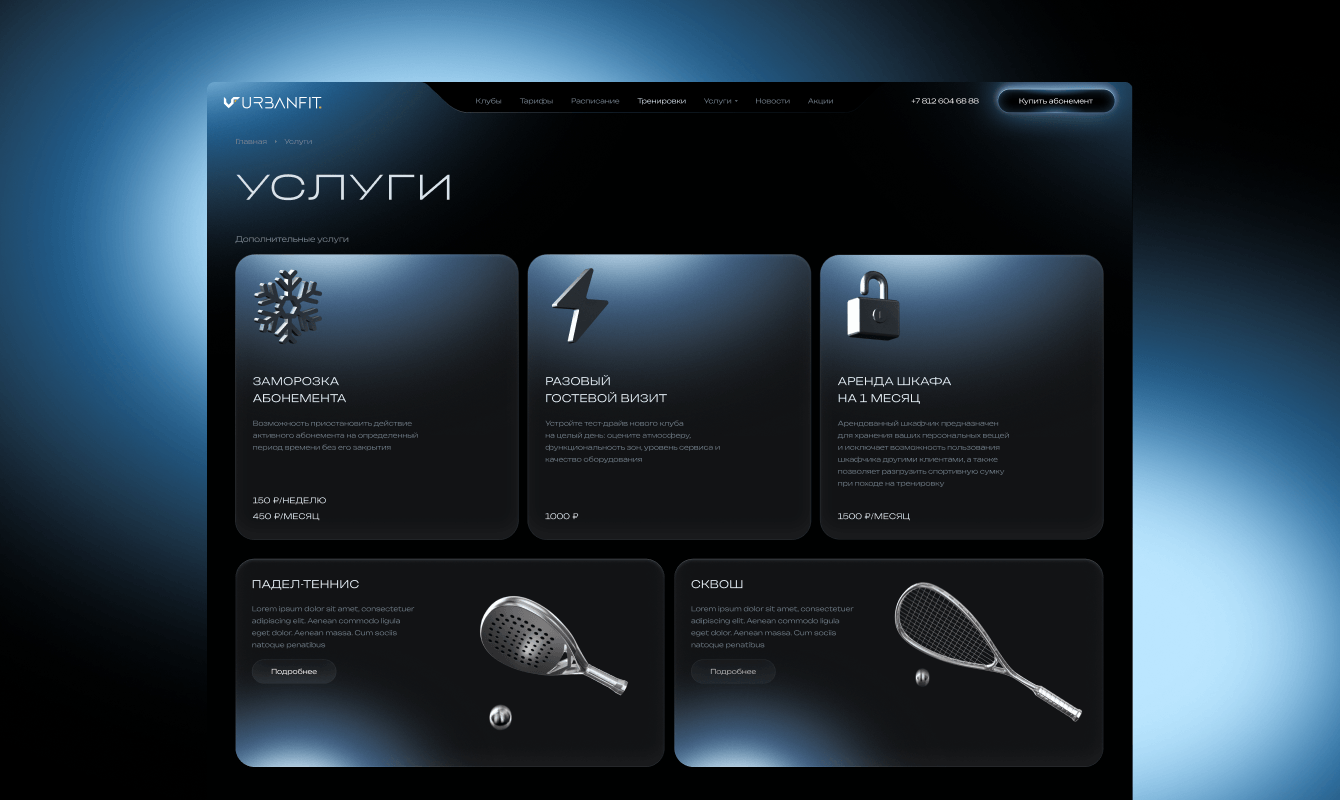 Задача — разработать новый имиджевый сайт, который станет цифровым отражением клубов и с первого касания передаст атмосферу URBANFIT.