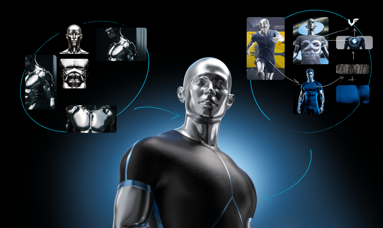 У URBANFIT. уже был свой персонаж. Клиент изначально предложил сценарий 3D-сцены на главной странице и видел этого персонажа центральной фигурой. Вместе мы сформулировали ТЗ для 3D-художника: сделать образ более интересным, реалистичным и цельным.