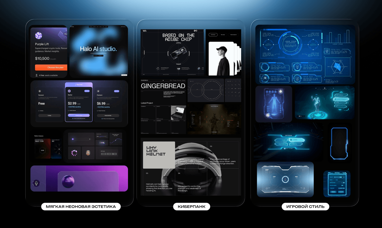 ✅ продумали визуальный язык: мягкая неоновая эстетика, роль 3D-маскота, собрали детальные прототипы всех основных страниц;