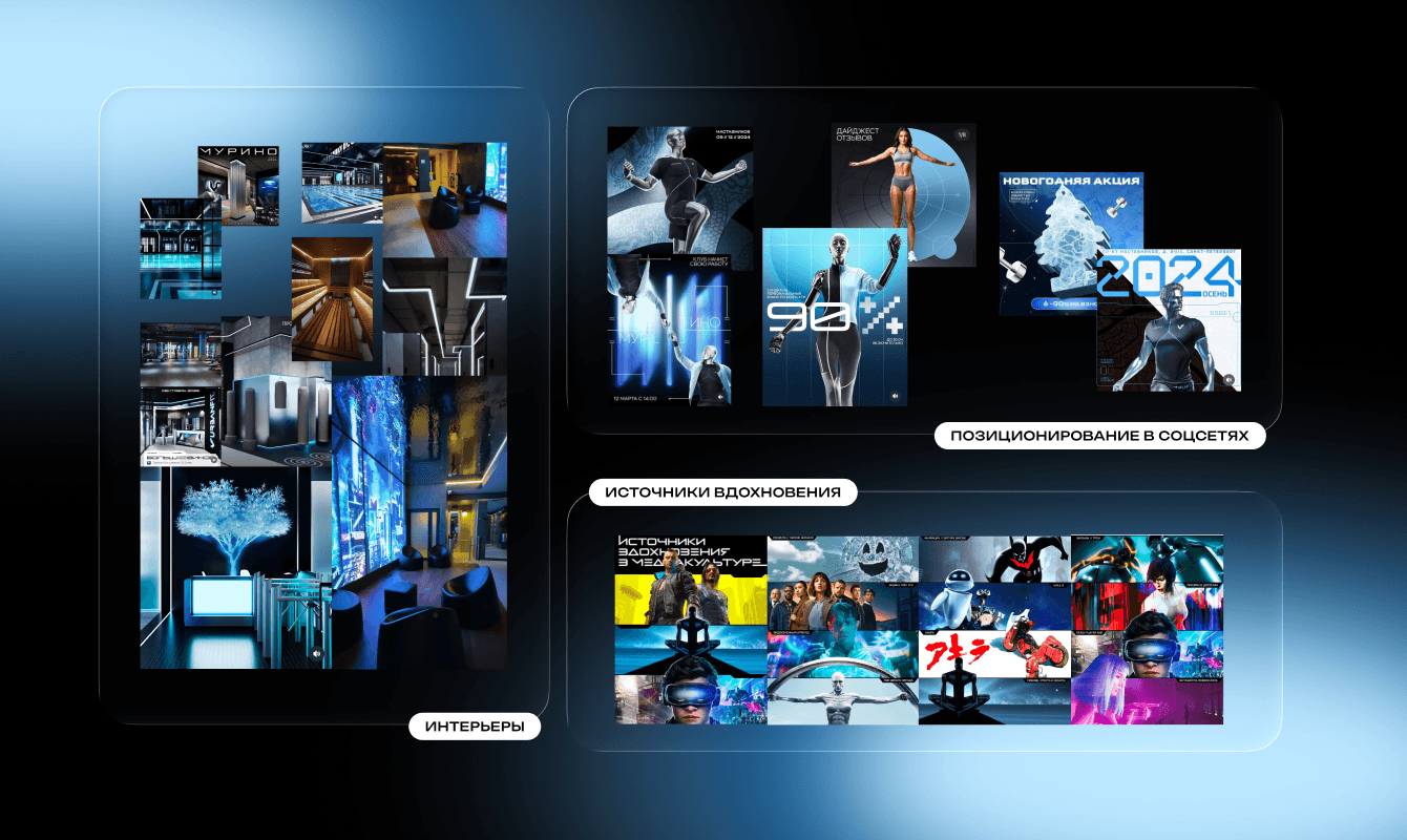 Сначала собрали общий мудборд из настроений, чтобы понять, что ближе клиенту. Смотрели, как они позиционируют себя в соцсетях, как выглядит их фитнес-клубы, чем вдохновлялись, когда оформляли интерьеры, изучали референсы из fashion-сегмента вроде Dior.