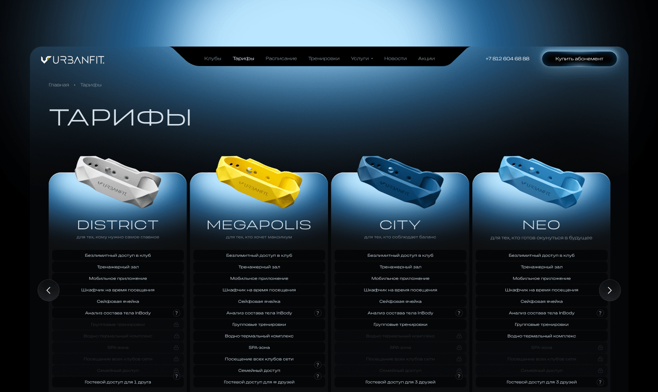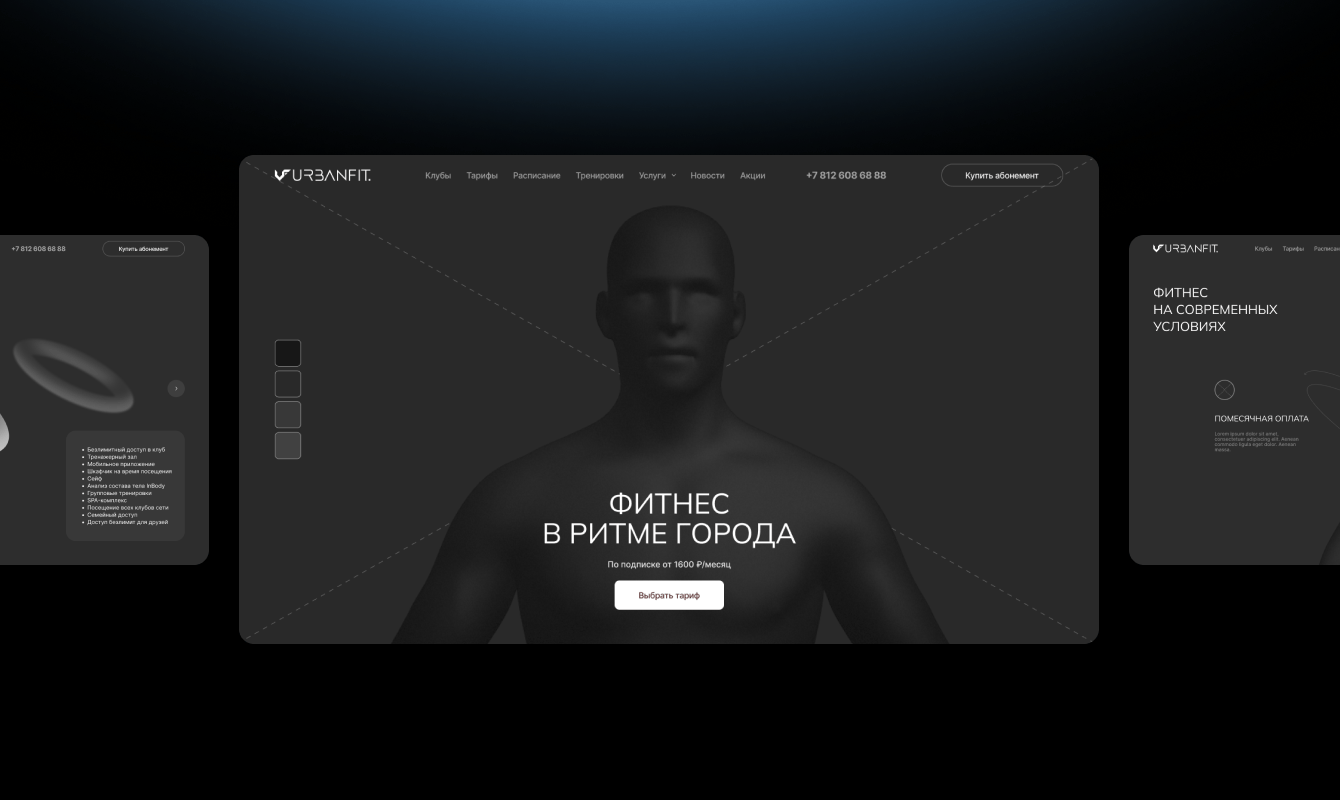 Задача — разработать новый имиджевый сайт, который станет цифровым отражением клубов и с первого касания передаст атмосферу URBANFIT.