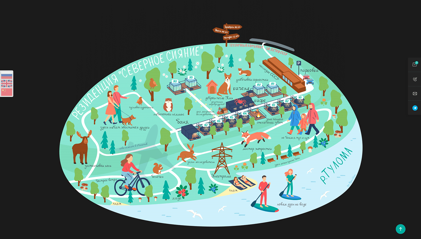 Перед нами стояла амбициозная цель — передать через цифровой продукт всю магию северной природы и безупречный уровень сервиса отеля. Резиденция «Северное Сияние» предлагает гостям не просто возможность провести ночь под крышей, но и возможность в полной мере насладиться гастрономическими изысками северной природы, а также прожить полноценное приключение: от наблюдения за северным сиянием до айсфлоатинга в Баренцевом море. Нам важно было не только показать инфраструктуру отеля, но и создать атмосферу предвкушения незабываемого путешествия.