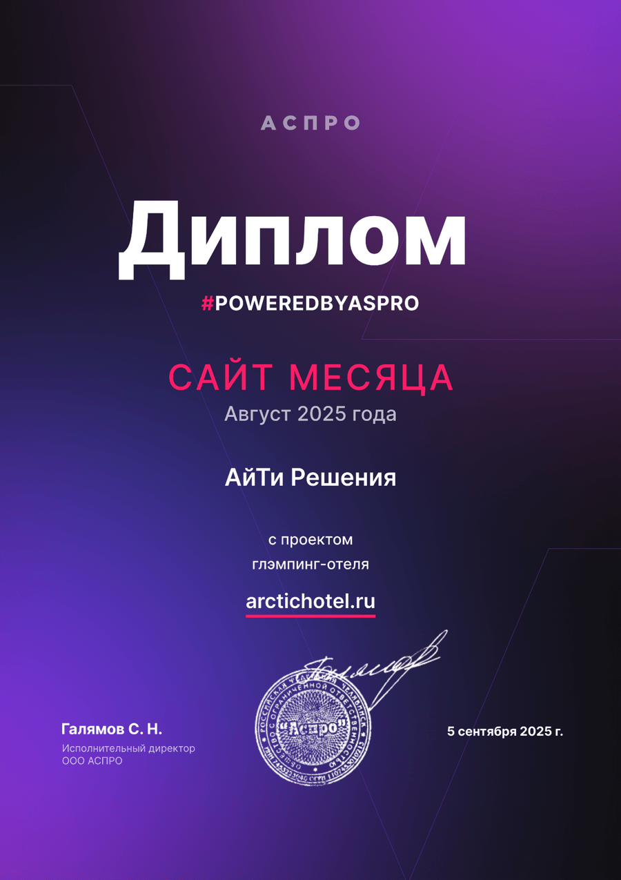 Мы постарались создать атмосферный дизайн. Использовали палитру, отражающую цвета северного неба, снега и полярного сияния. Сделали акцент на высококачественных фотографиях и видео, чтобы сразу погрузить пользователя в магию Севера. Сайт безупречно работает на всех устройствах. Кстати, за разработку этого проекта, мы были удостоены звания «Лучший корпоративный сайт» от Аспро!