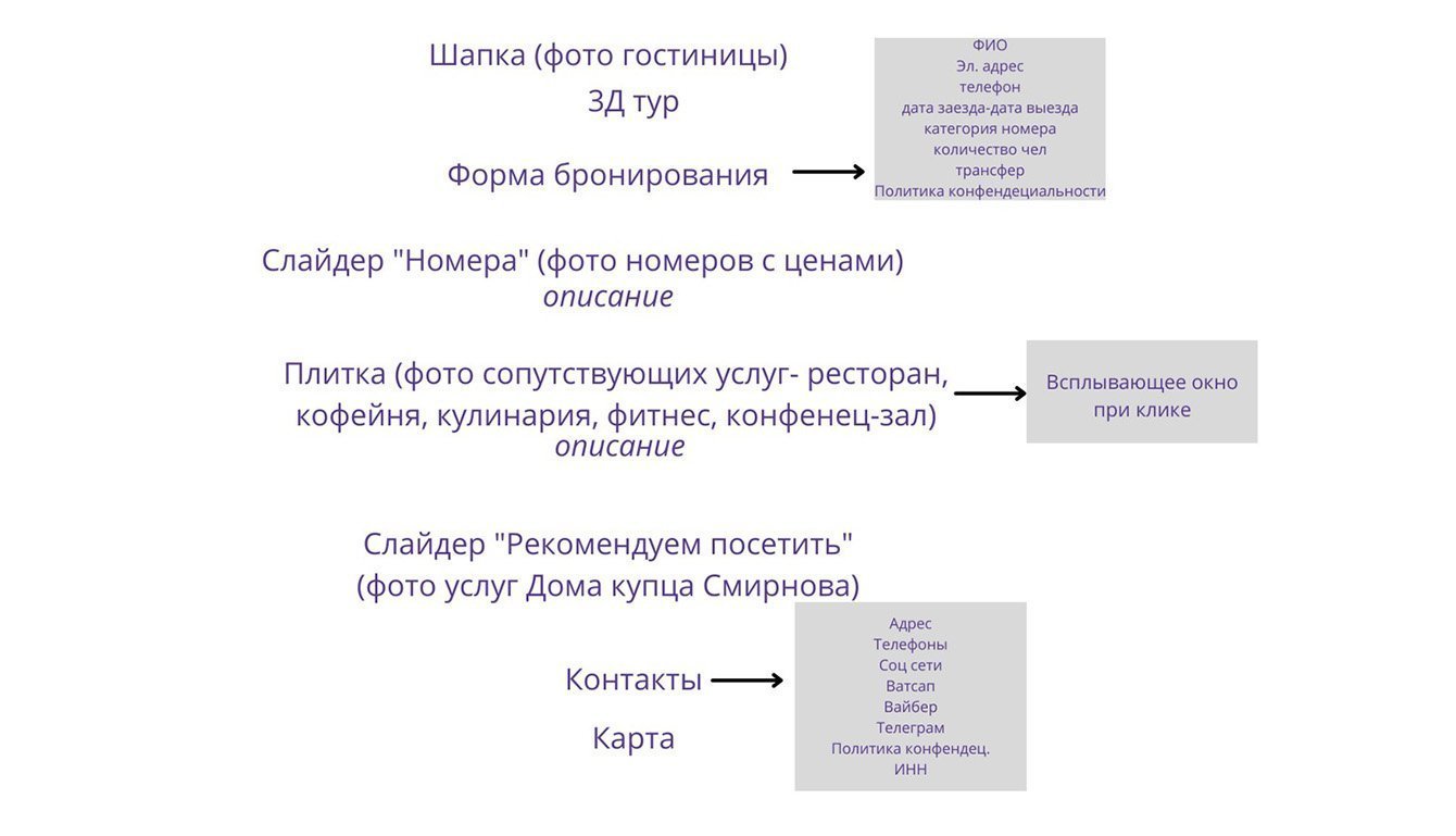 Лёгкий и быстрый сайт обязательно с оригинальными и красными фотографиями номеров, ресепшена, фасада гостиницы, а также со всей необходимой контактной информацией.
