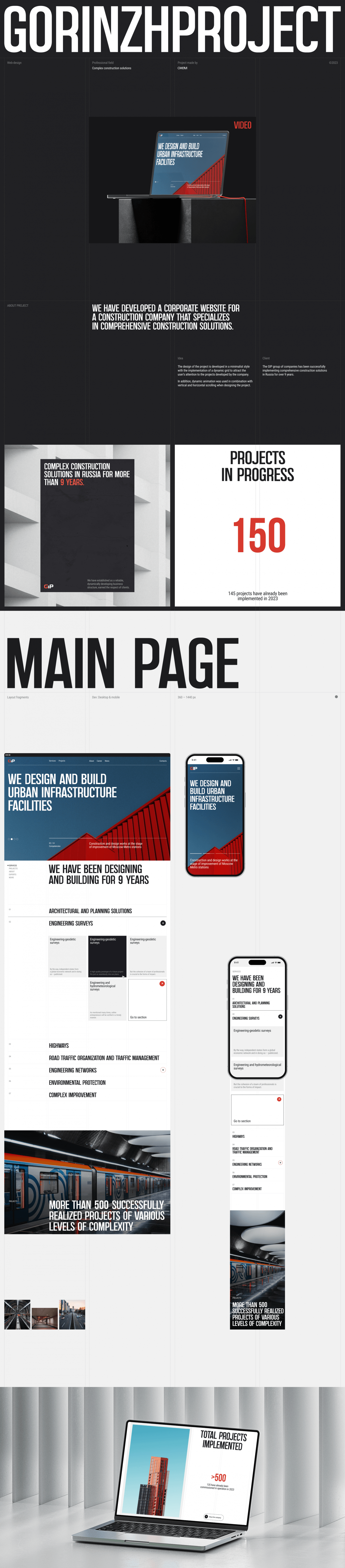 Задача сайта — показать ГорИнжПроект как современную группу компаний и через это ярче заявить о бренде на рынке и привлечь новых сотрудников в команду заказчика.