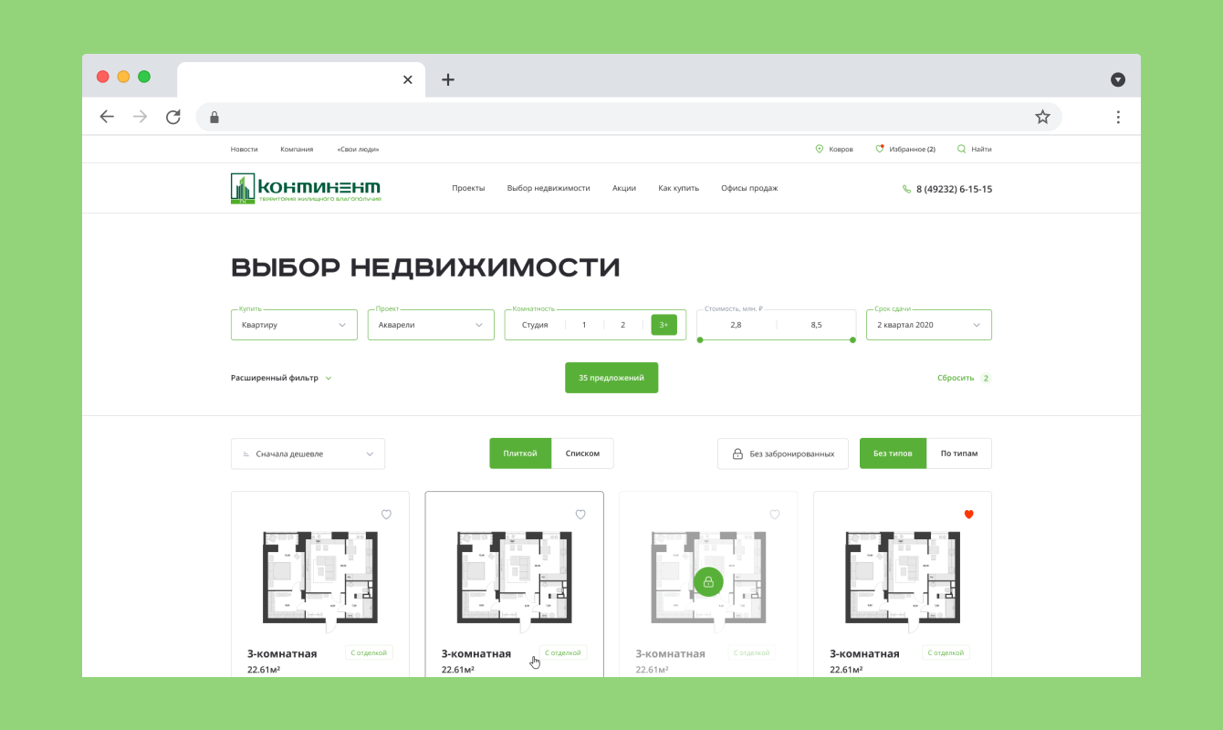«Умный фильтр» помогает быстро сориентироваться среди сотен вариантов объектов.