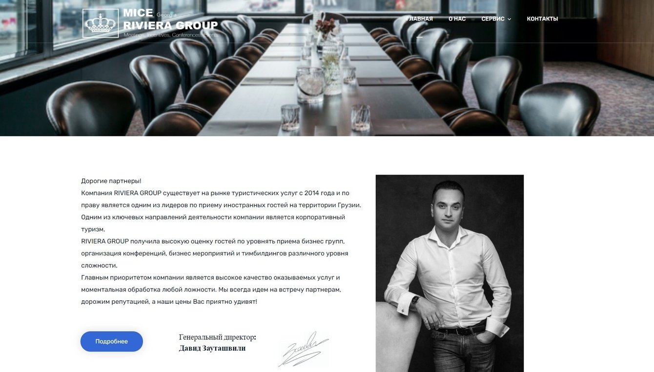 Разработка веб-сайта для грузинской компании RIVIERA GROUP. Одним из ключевых направлений деятельности компании является корпоративный туризм в Грузии.