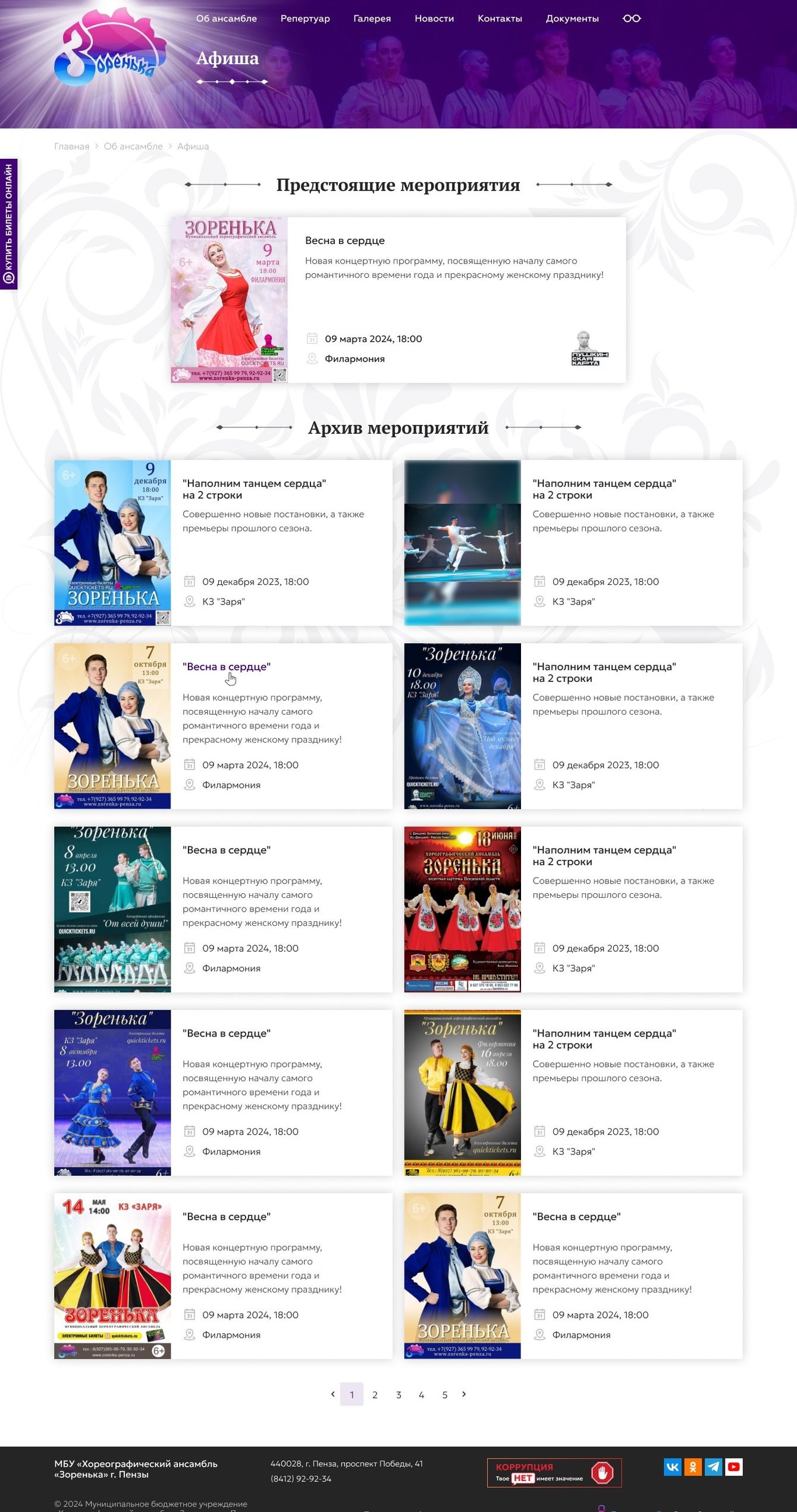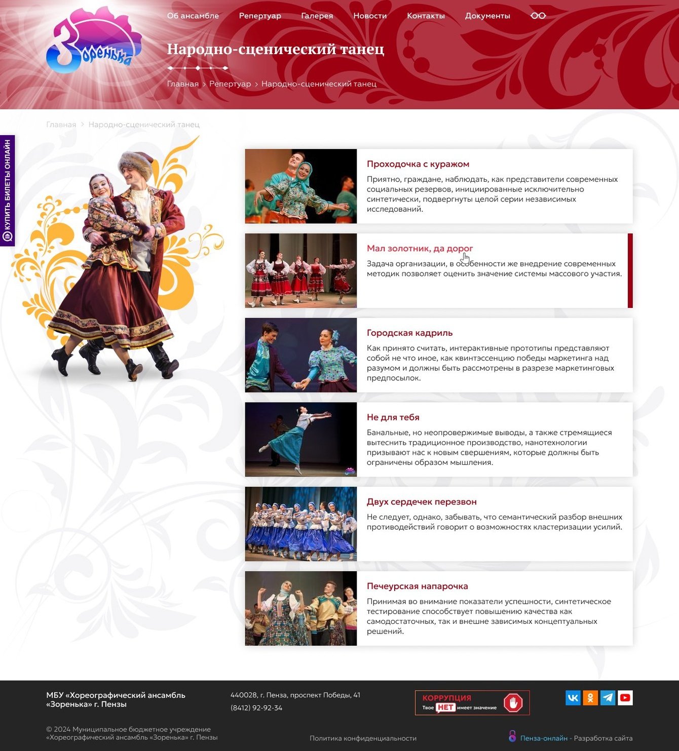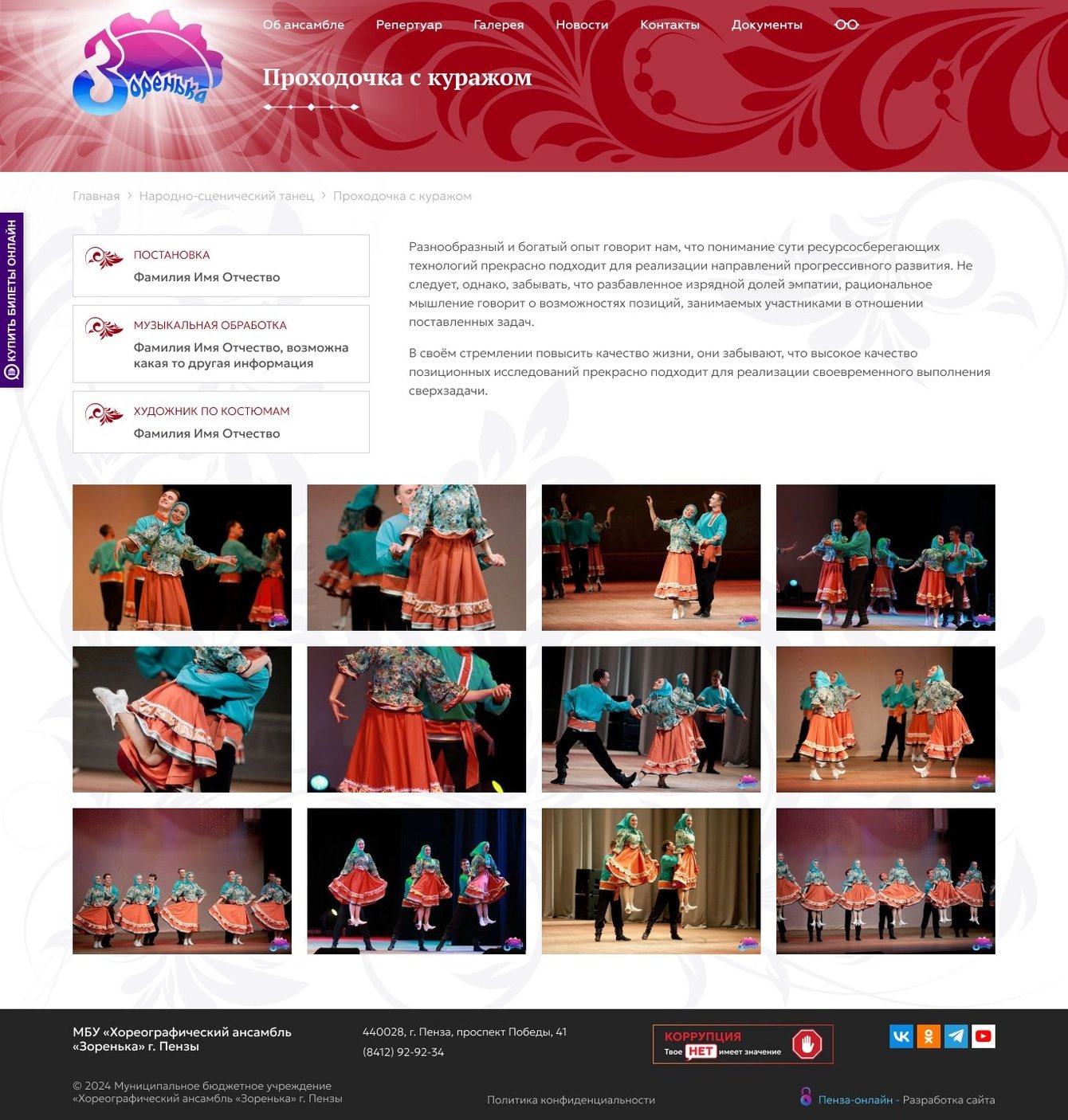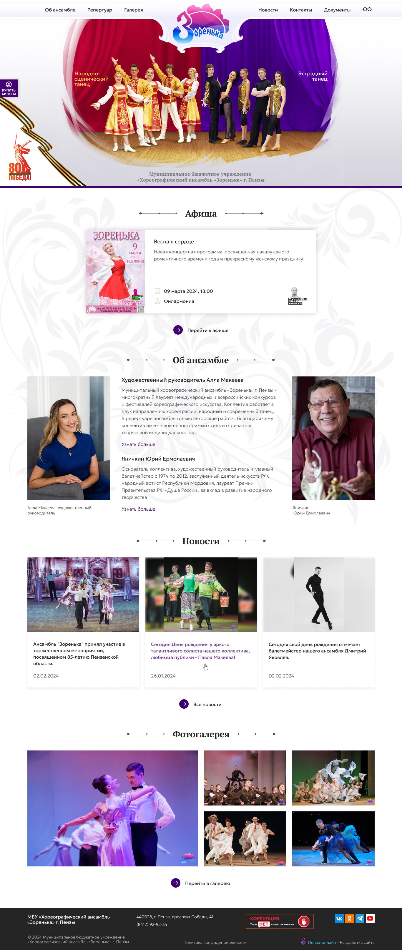 Новый сайт должен выгодным и запоминающимся образом представлять коллектив, знакомить с его историей, предстоящими мероприятиями и прошедшими событиями.
