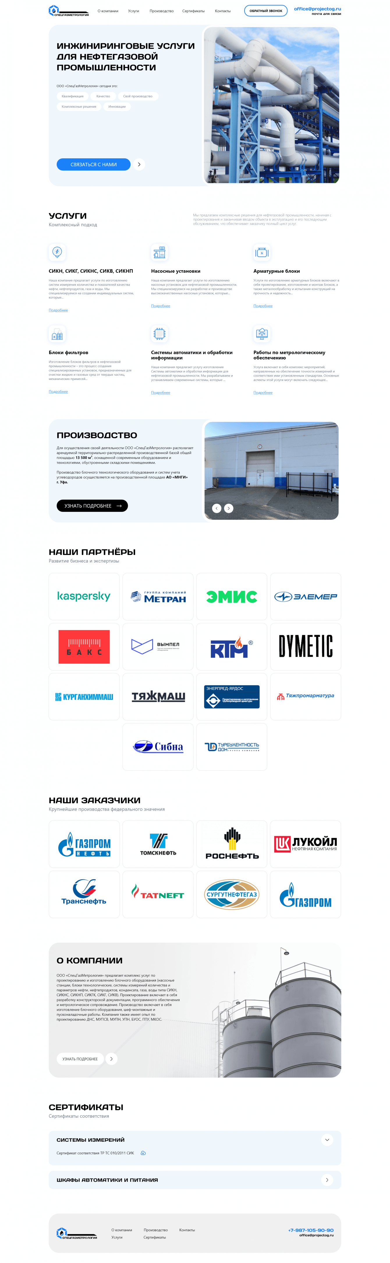 Проект направлен на создание современного и функционального сайта для инжиниринговой компании, предоставляющей услуги для нефтегазовой отрасли. Цель сайта – улучшить онлайн-присутствие компании, привлечь новых клиентов, продемонстрировать экспертизу и обозначить успешные проекты.