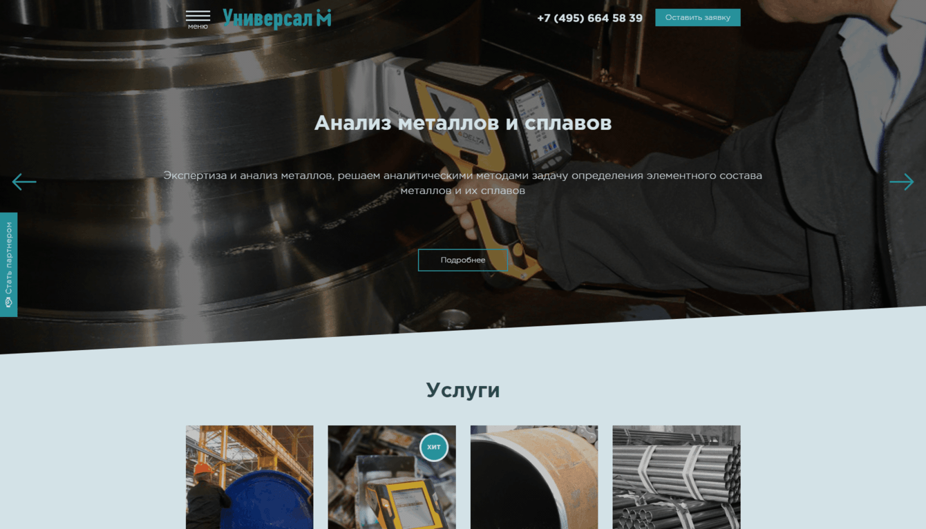В этом проекте мы хотели отразить серьезность бизнеса Заказчика и вместе с тем прогрессивный инновационный подход и отсутствие излишней бюрократии. Поэтому в дизайне сочетали строгие линии и достаточно насыщенные цвета, понятную структуру каталога услуг и только действительно нужные информационные разделы.