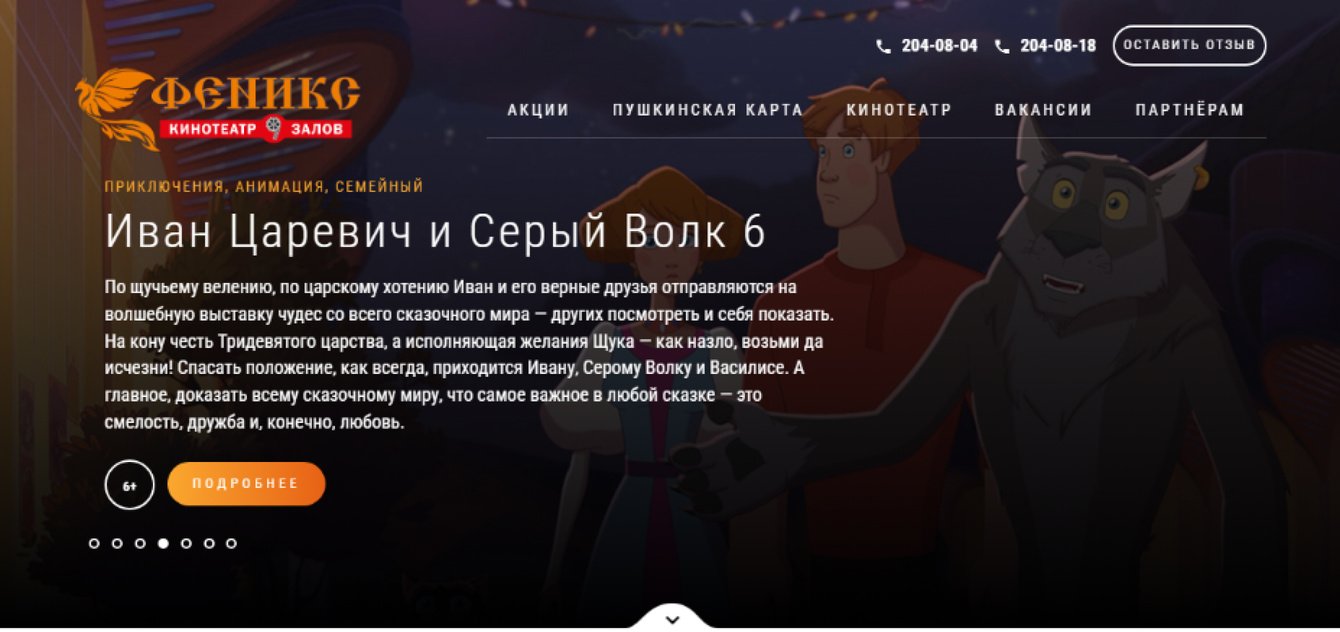 За 20 рабочих дней мы создали современный и удобный сайт для кинотеатра «Феникс» в Ростове-на-Дону. Уникальный дизайн, высокая скорость загрузки и полная интеграция с билетной системой сделали ресурс максимально функциональным.